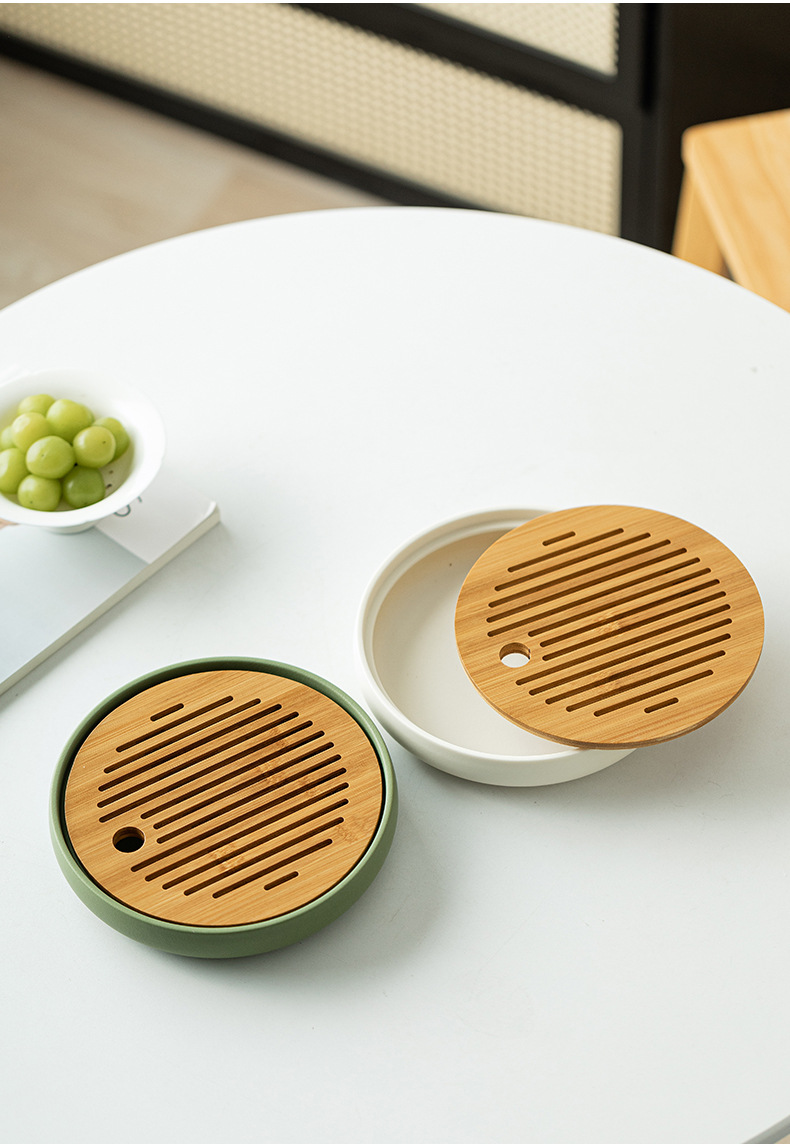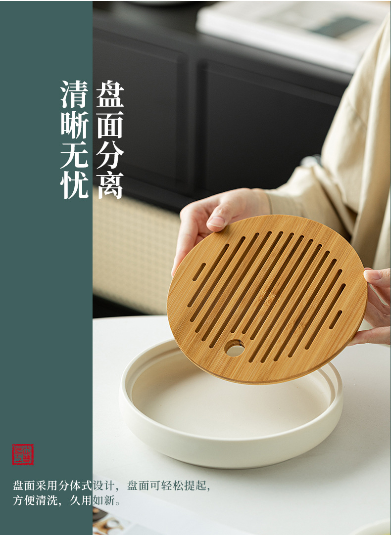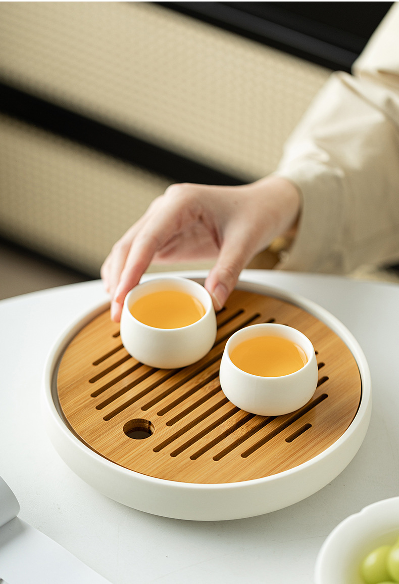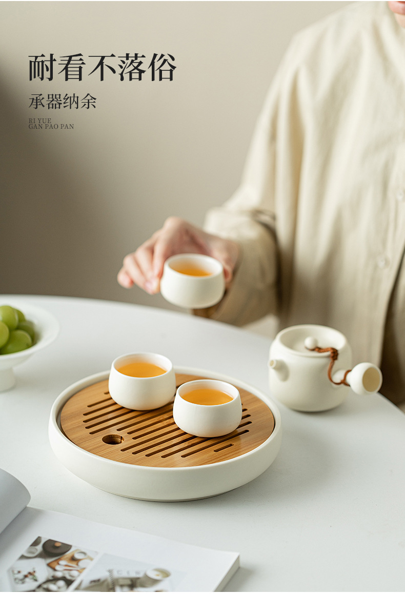 Bàn pha khô mặt trời và mặt trăng khay trà hình tròn bằng gỗ dụng cụ pha trà Kung Fu đơn giản gia dụng