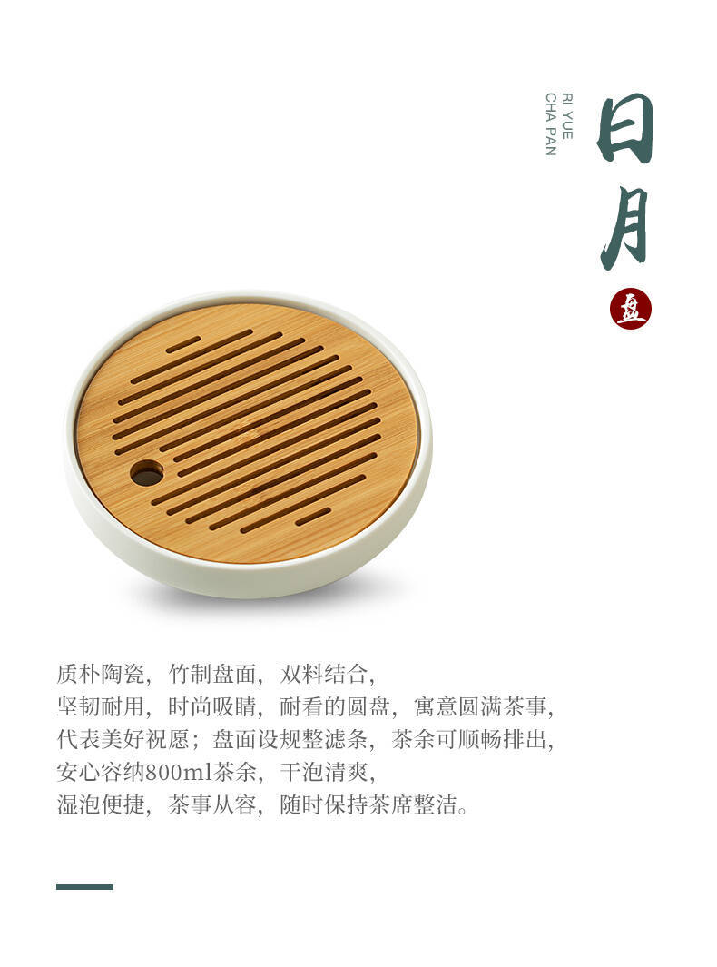 - Bàn pha khô mặt trời và mặt trăng khay trà hình tròn bằng gỗ dụng cụ pha trà Kung Fu đơn giản gia dụng