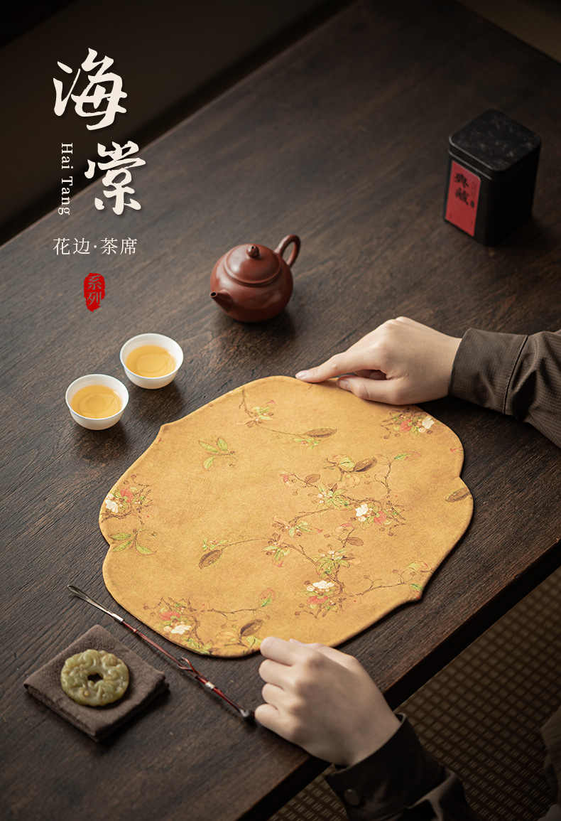 Bàn trà bên hoa thu hải đường kiểu Trung Quốc mới bàn trà thiền ý bàn trà cách nhiệt khăn trải bàn trà khăn trà phụ kiện bộ trà cờ