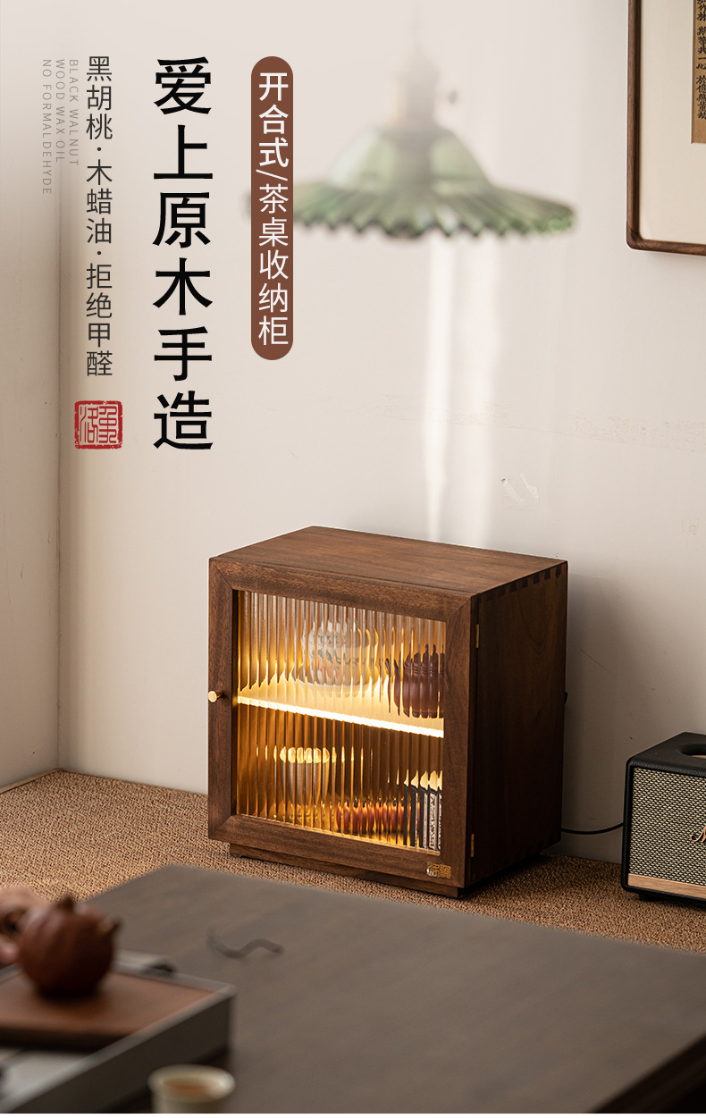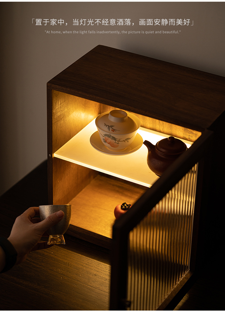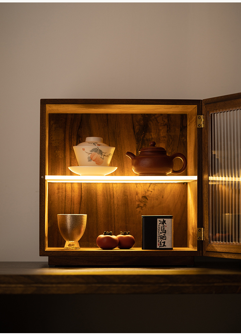 - Bàn trà để bàn, tủ góc, Bộ trà, tủ đựng trà, tủ gỗ nguyên khối chống bụi, tủ nhỏ óc chó có đèn, tủ đựng đồ