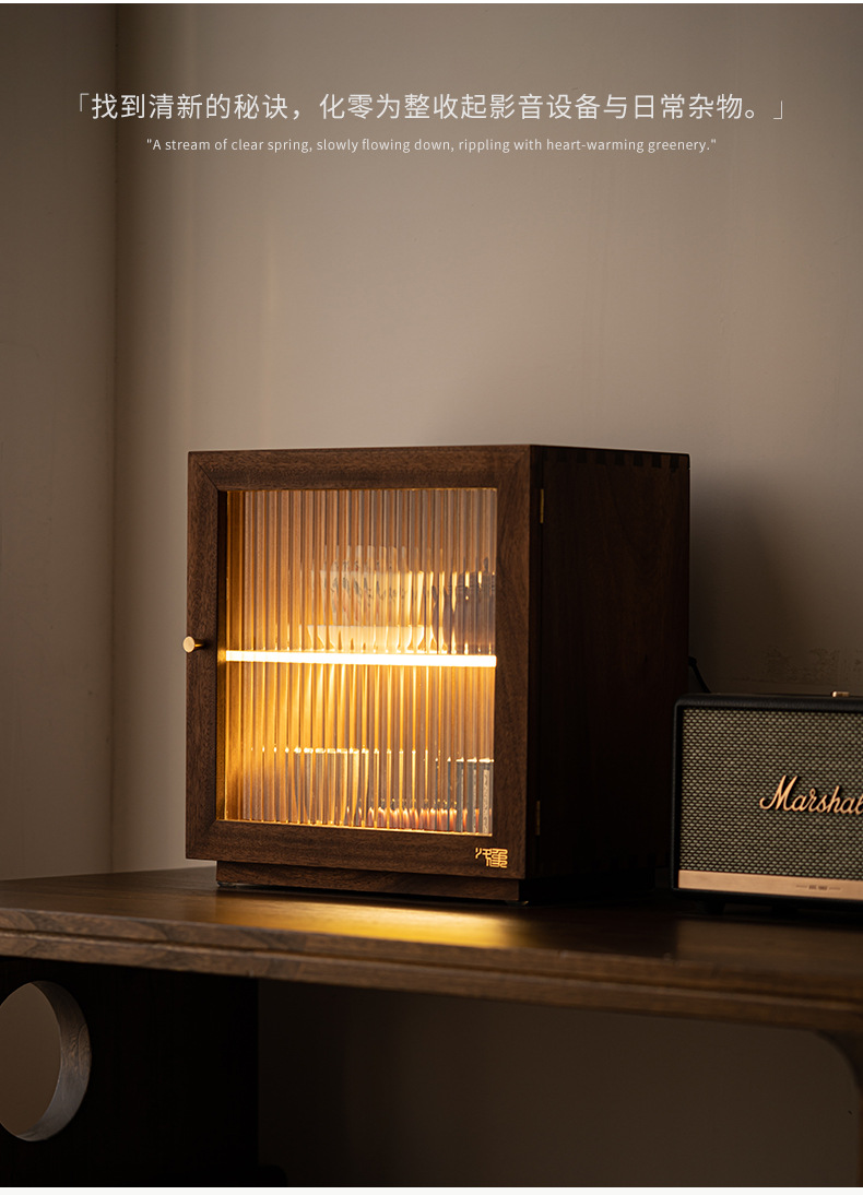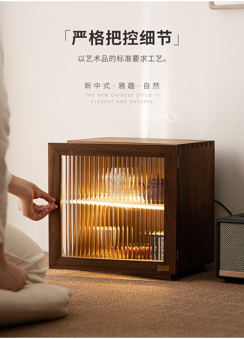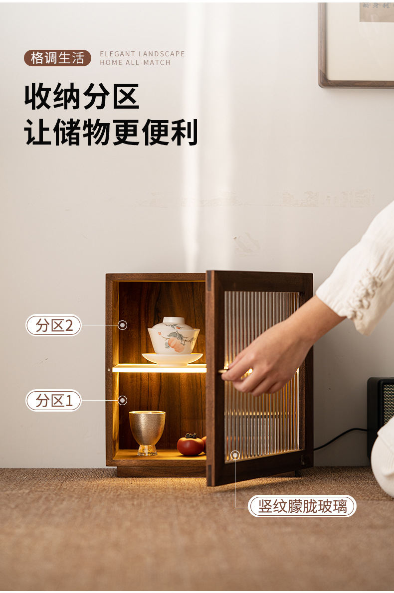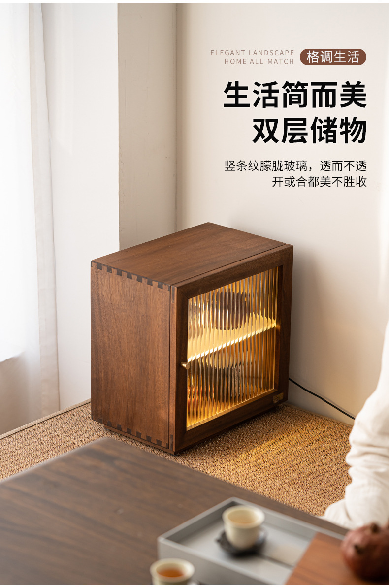 - Bàn trà để bàn, tủ góc, Bộ trà, tủ đựng trà, tủ gỗ nguyên khối chống bụi, tủ nhỏ óc chó có đèn, tủ đựng đồ