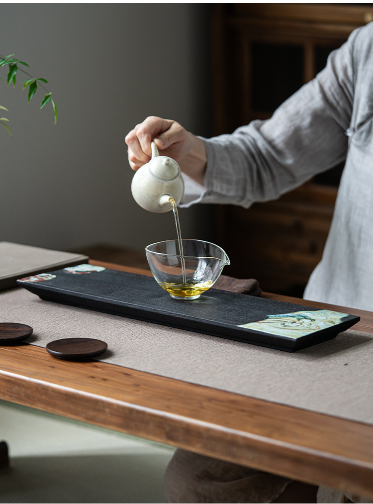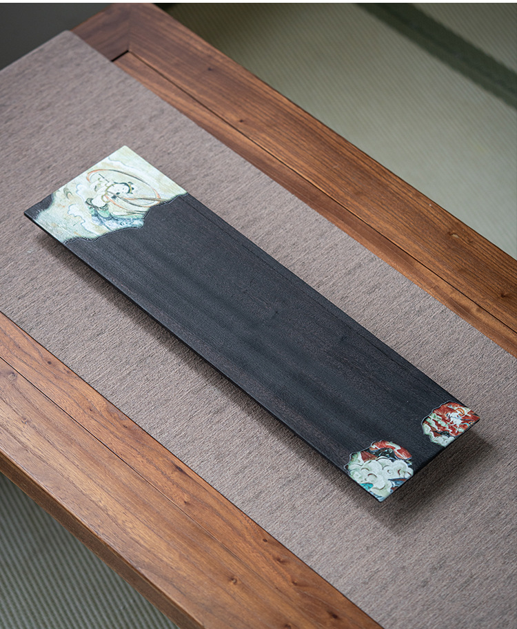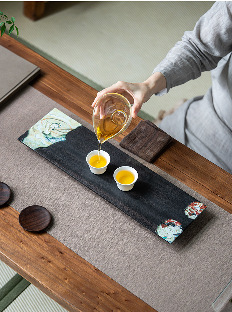 Bàn trà gỗ nhỏ bằng sắt rèn kiểu Nhật, khay trà pha khô bằng gỗ sáp trắng, khay đựng trà bằng gỗ nguyên tấm, Khay đựng ấm