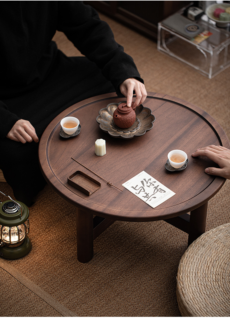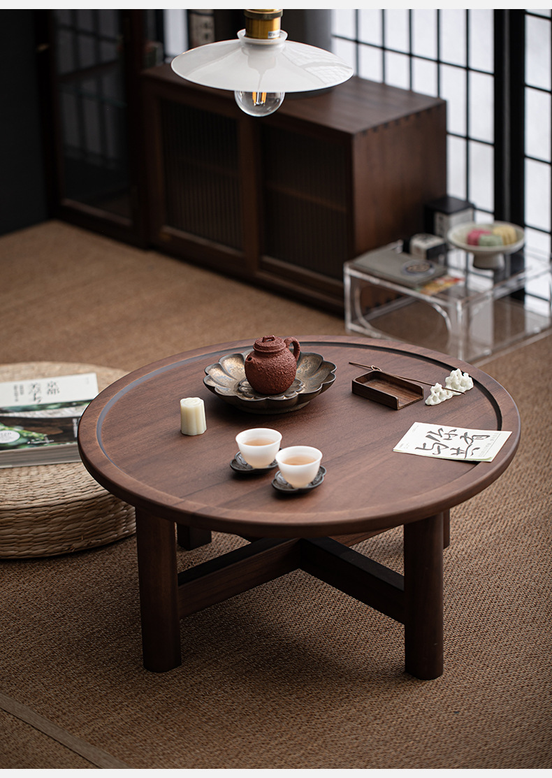 - Bàn trà nhỏ Gỗ Óc Chó bàn uống trà ban công tròn mini bàn gia dụng đơn giản Bàn thấp Tatami Bàn sofa