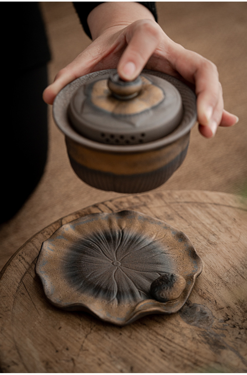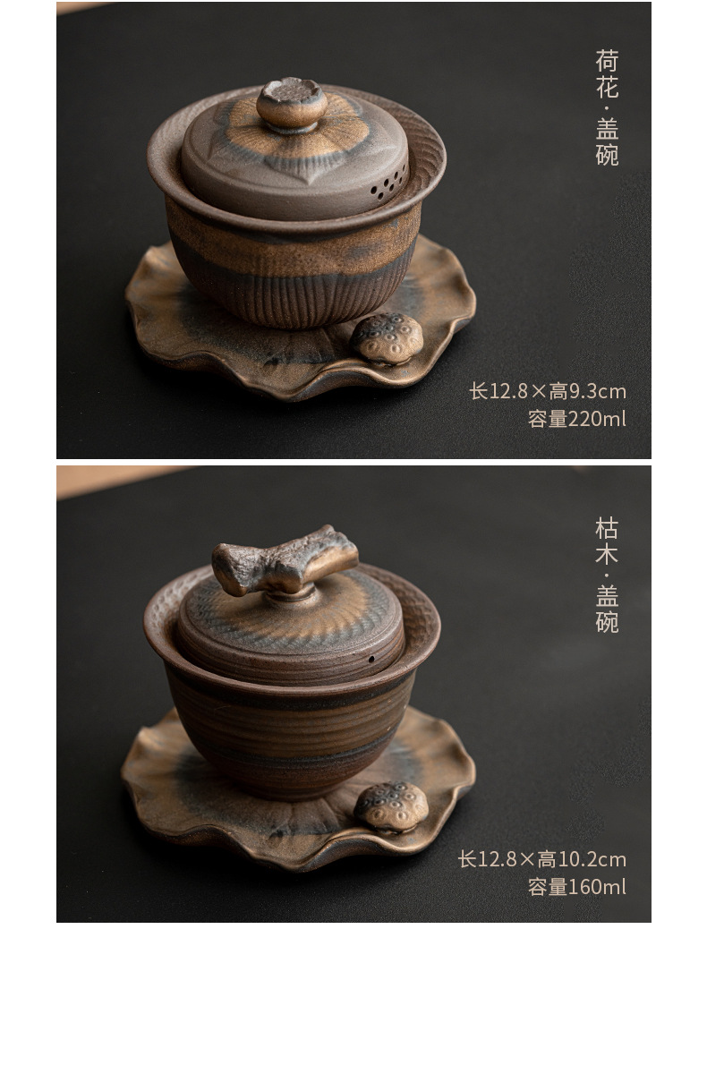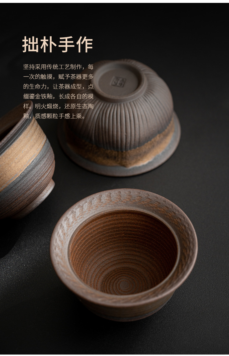 - Bát ba chỉ mạ vàng cổ điển không nóng tay Bộ trà Kung Fu cầm tay Bát trà gốm thô Bộ trà mạ vàng Dụng cụ pha trà