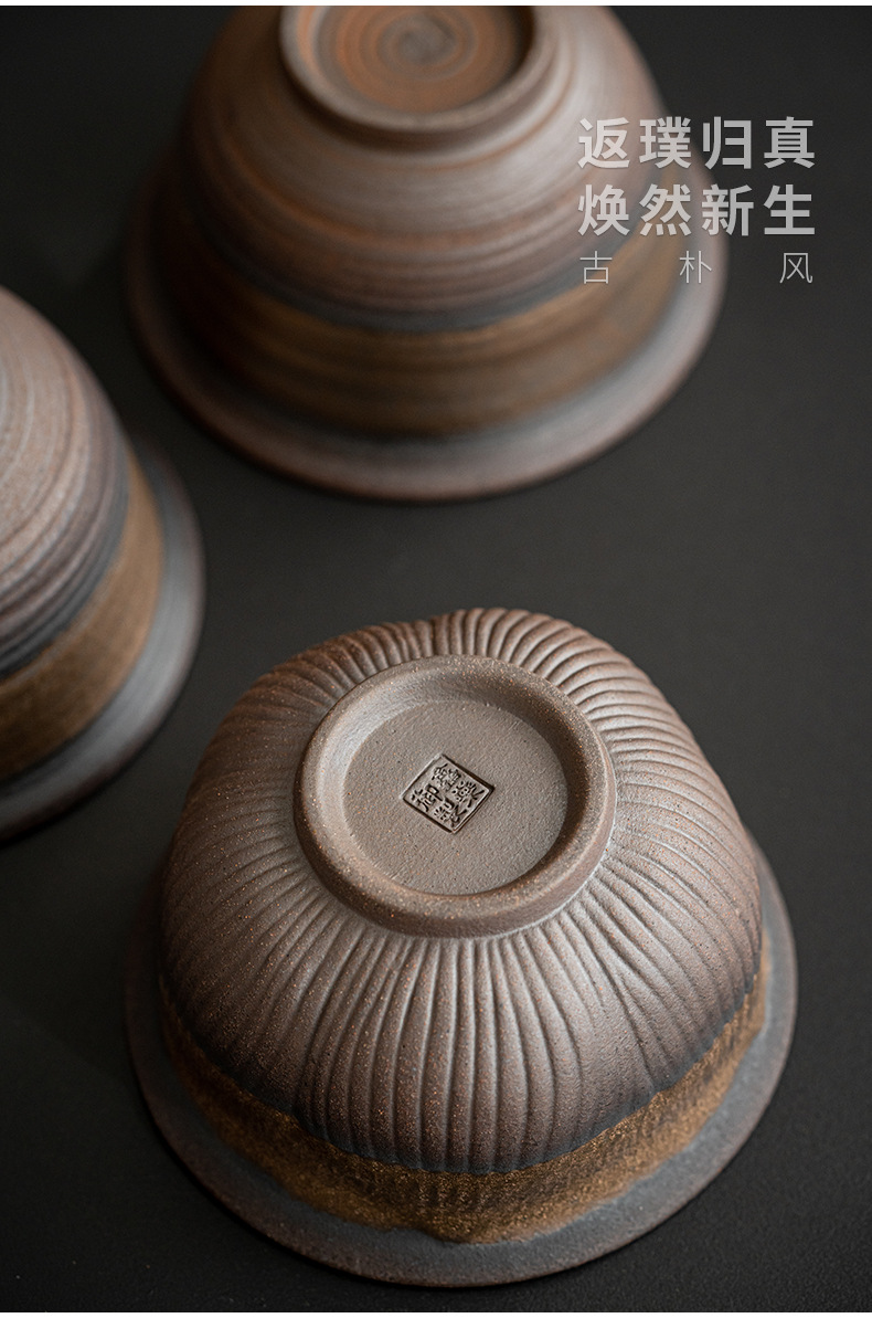 Bát ba chỉ mạ vàng cổ điển không nóng tay Bộ trà Kung Fu cầm tay Bát trà gốm thô Bộ trà mạ vàng Dụng cụ pha trà