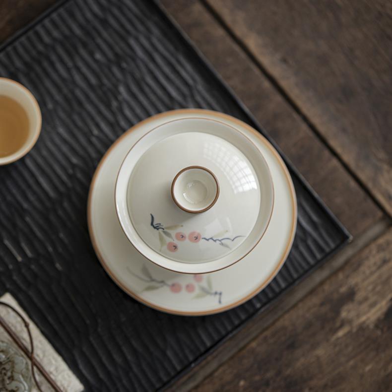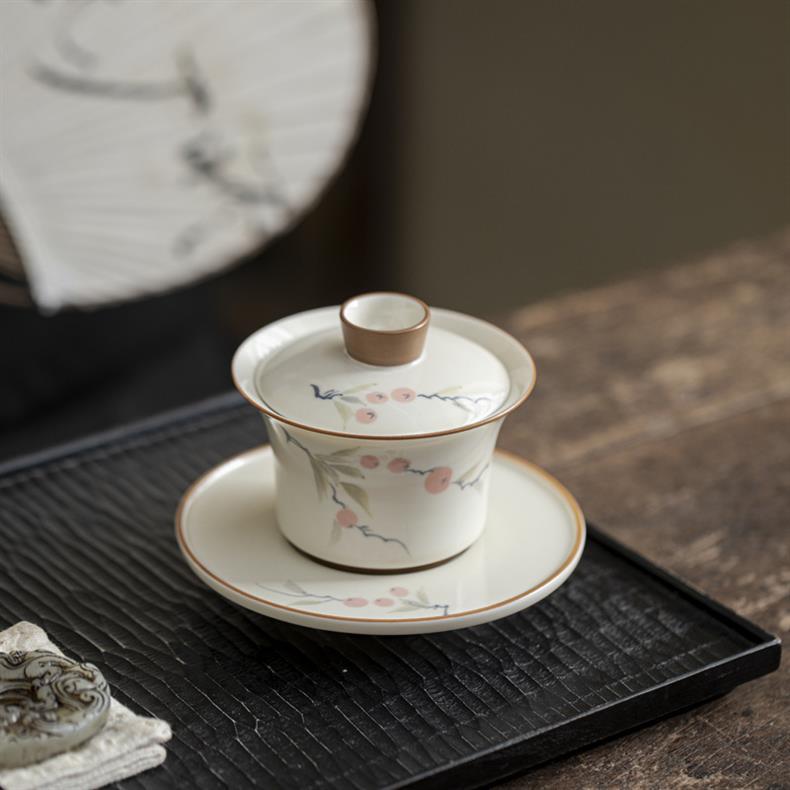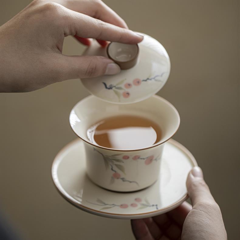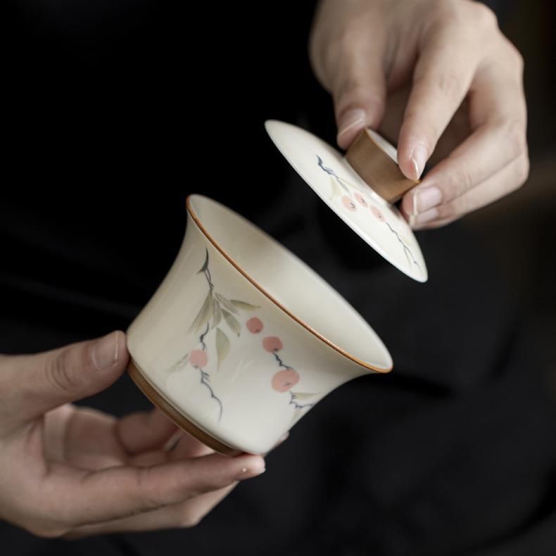 Bát ba tài vẽ tay tráng men màu hồng hồng Ruyi dụng cụ pha trà Kung Fu cao cấp Trung Quốc gia dụng bát trà gốm sứ