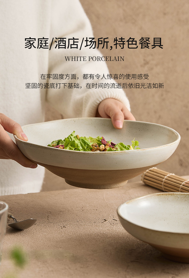 - Bát canh gốm thô, bát đựng cá bắp cải muối gia dụng, bát lớn, bộ đồ ăn bằng sứ sáng tạo có ren kéo tay, bát ăn, bát mì thương mại