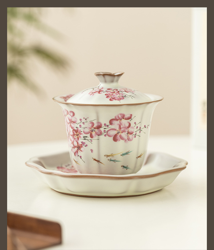 Bát có nắp ba hoa lê đông lạnh mỡ lợn, bộ trà nữ, bát pha trà Kung Fu, bát trà cao cấp có nắp đậy