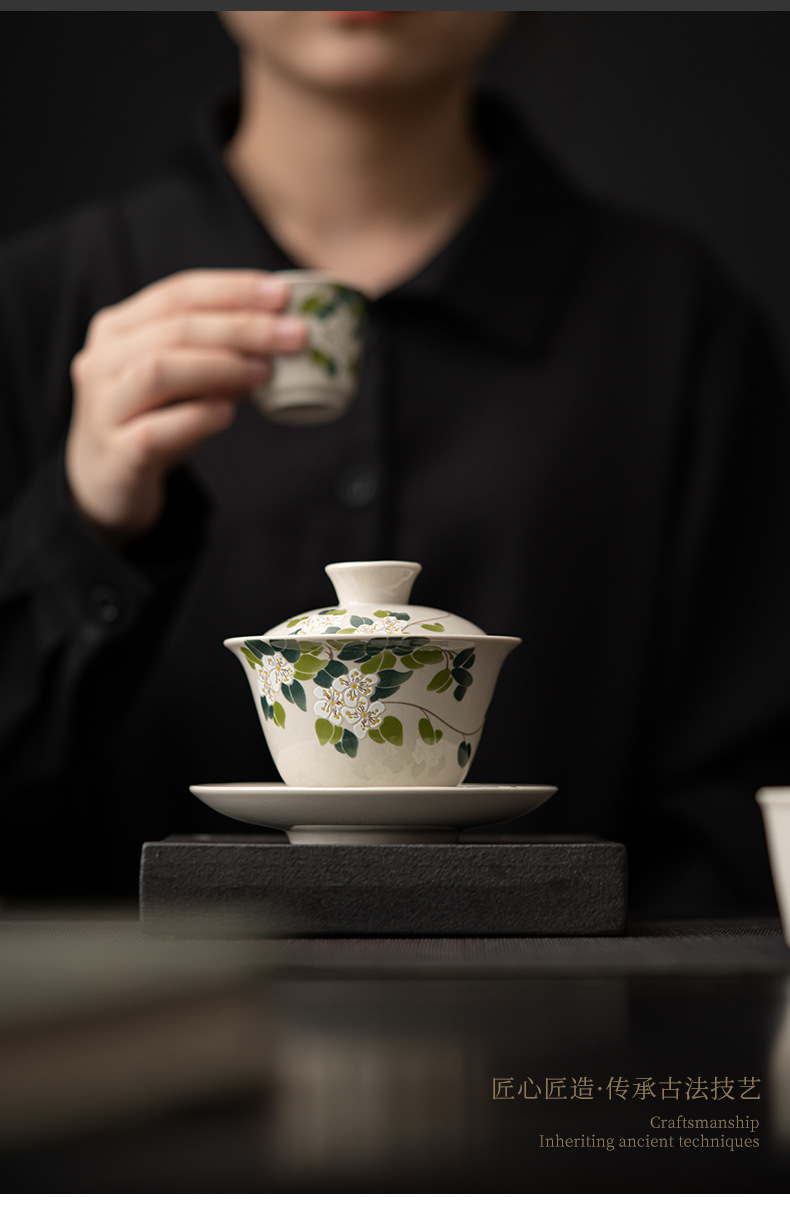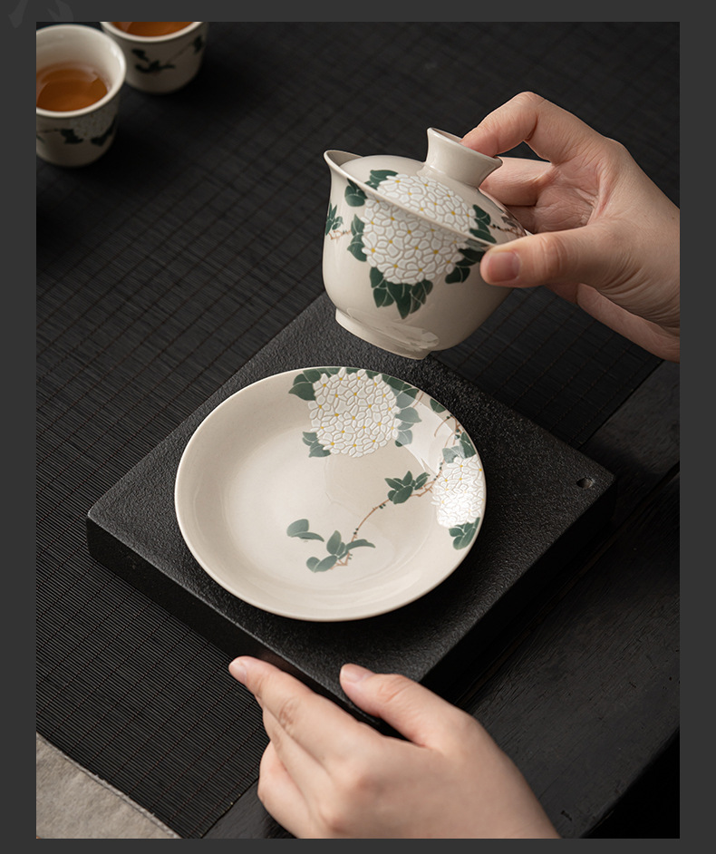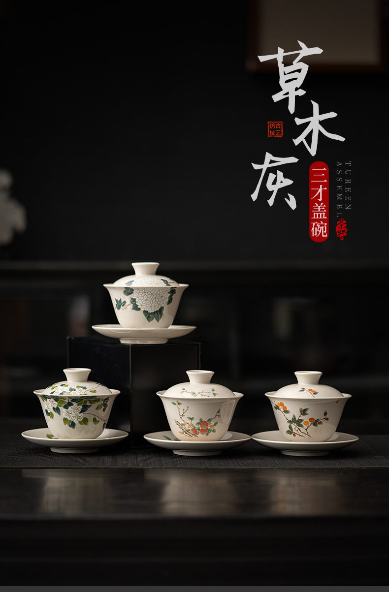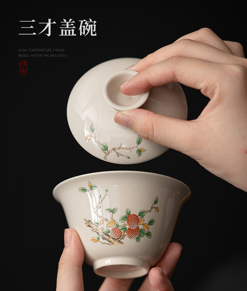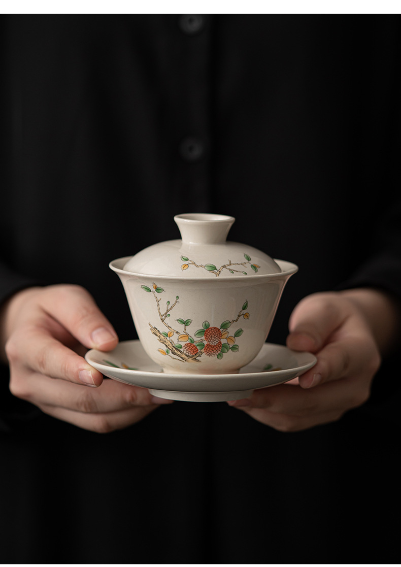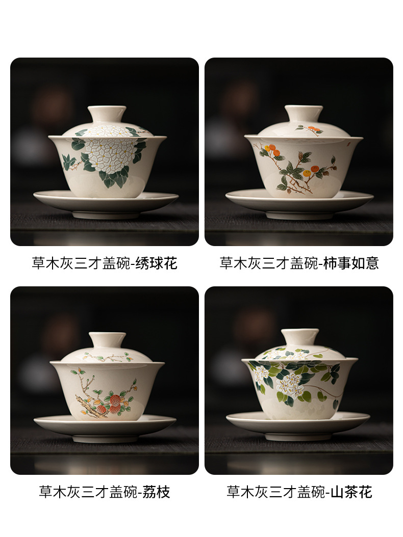 Bát có nắp ba màu xám thực vật Đồ pha trà gốm thô kiểu Nhật Bộ pha trà Kung Fu Bát pha trà gốm sứ gia dụng cốc trà đơn