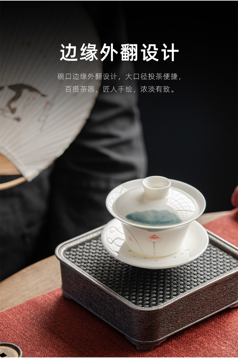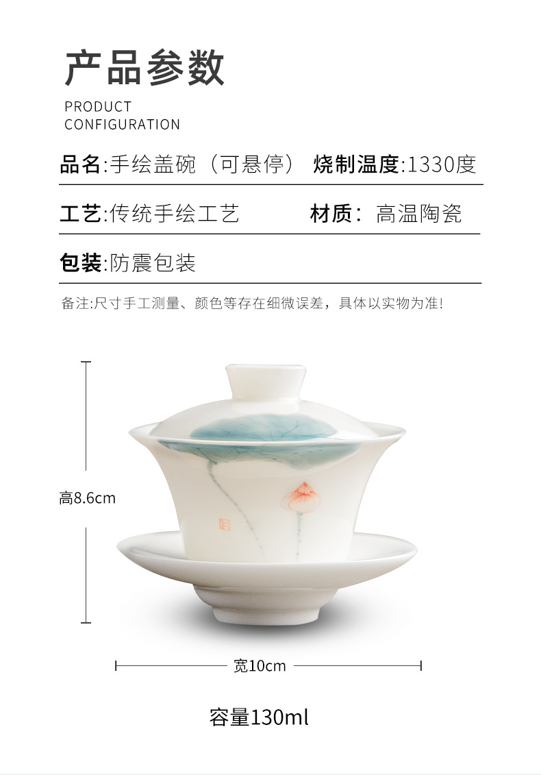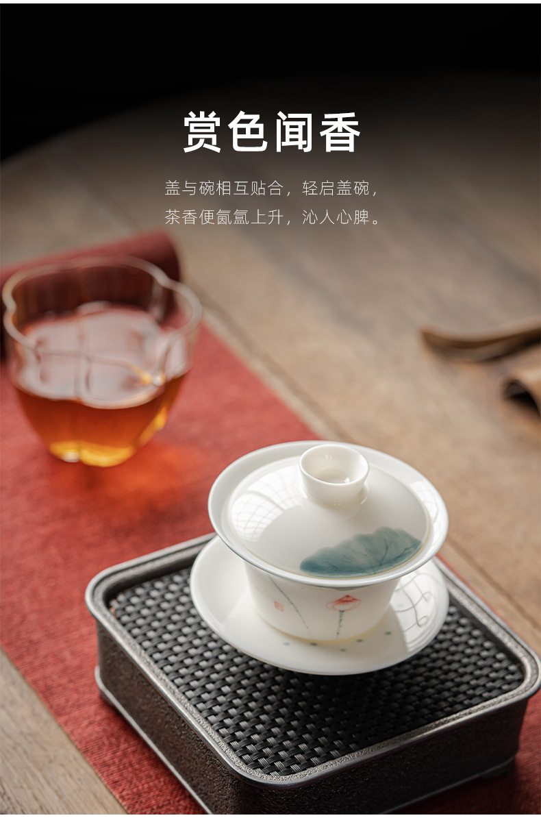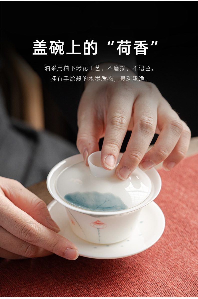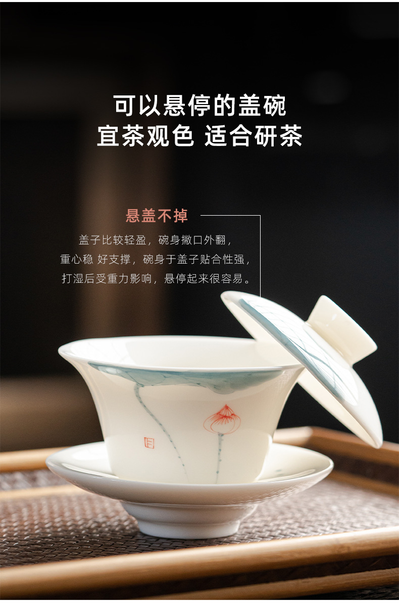 - Bát có nắp ba tài bằng ngọc trắng vẽ tay để pha trà, tách trà nổi đơn bằng sứ trắng, bộ trà kung fu bằng gốm.
