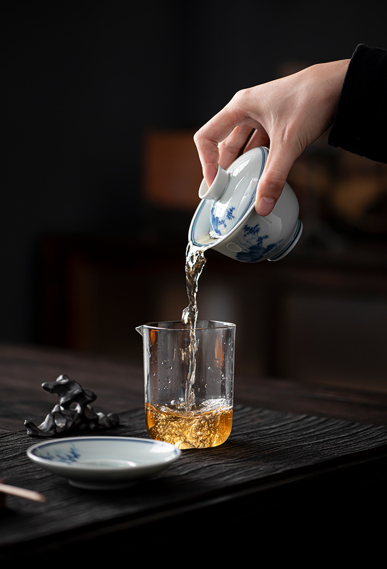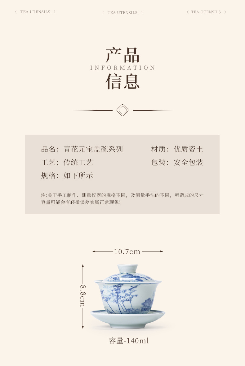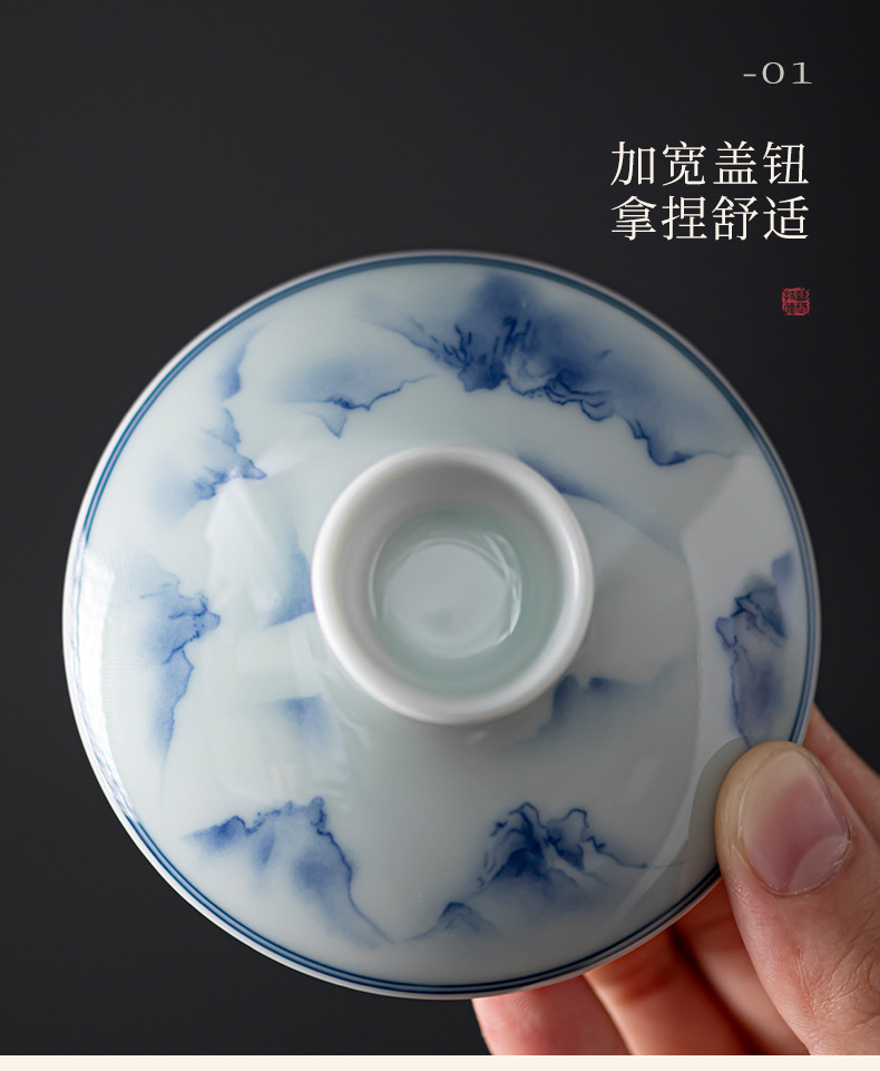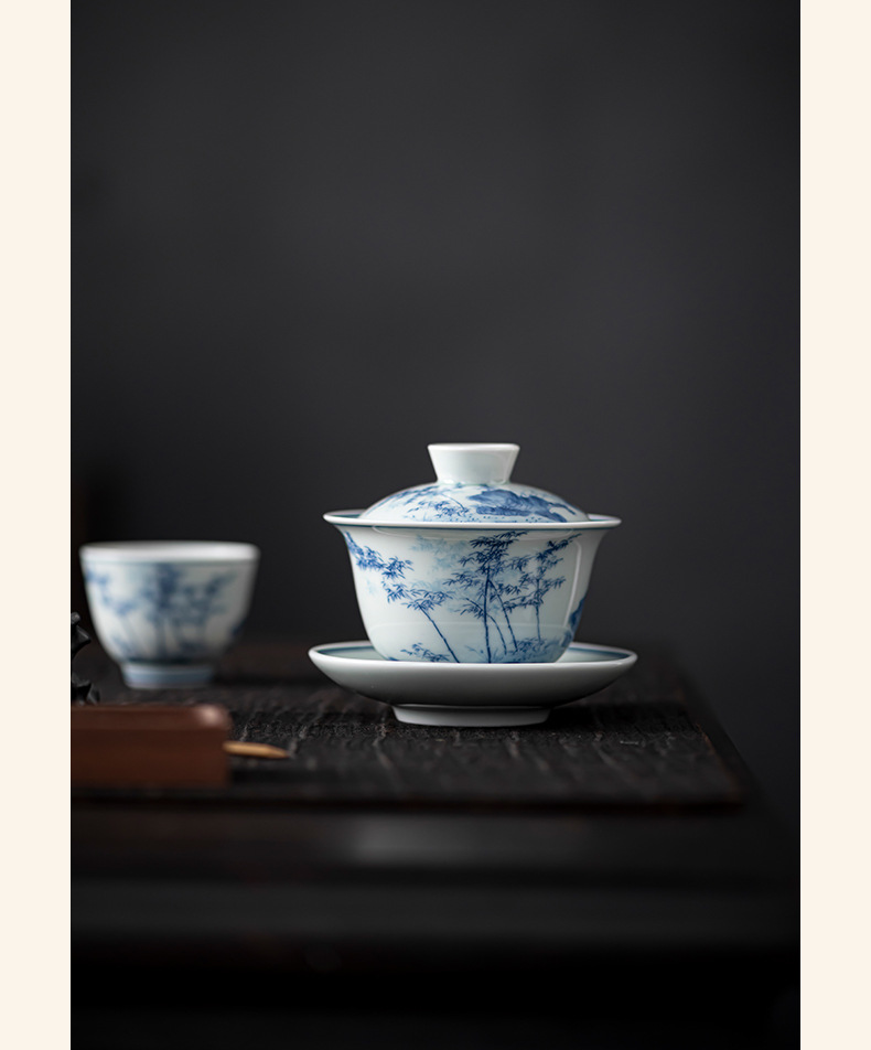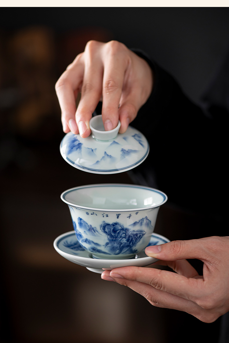 - Bát có nắp ba tài cổ điển cốc trà đơn gốm sứ cao cấp bộ trà Kung Fu sứ trắng xanh bát pha trà cỡ lớn nhỏ có nắp