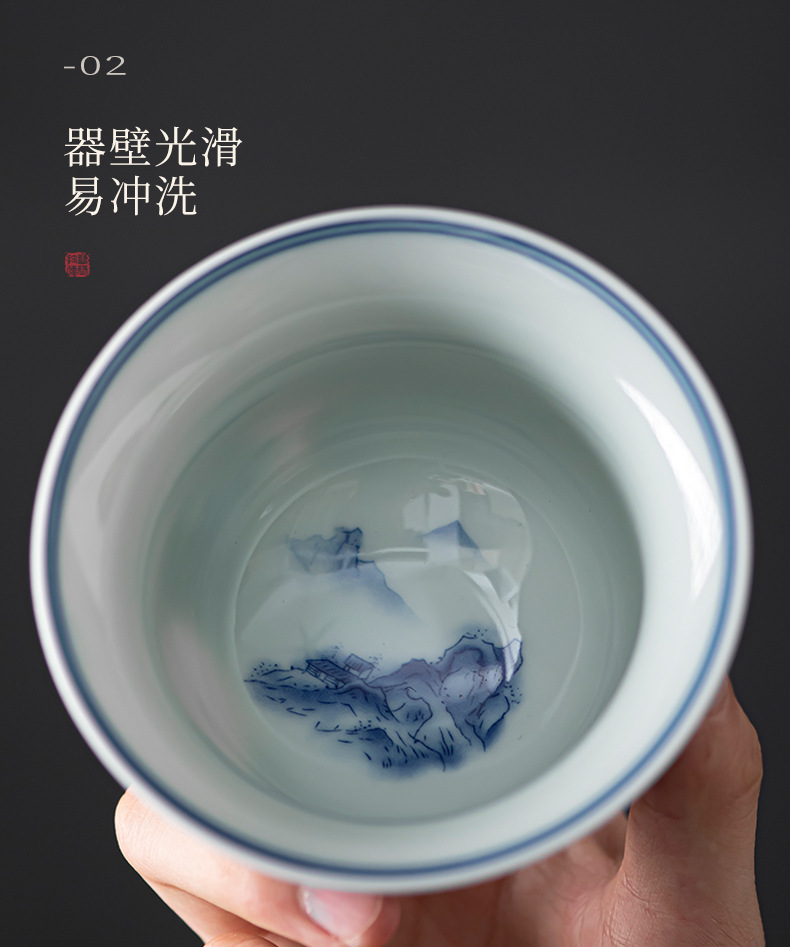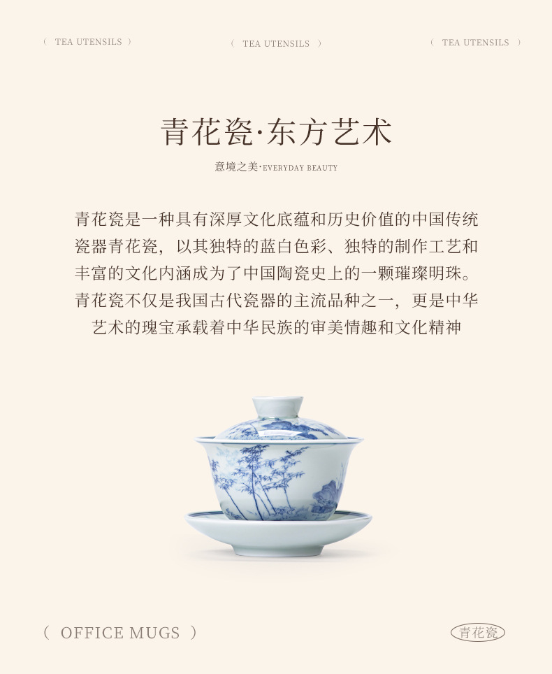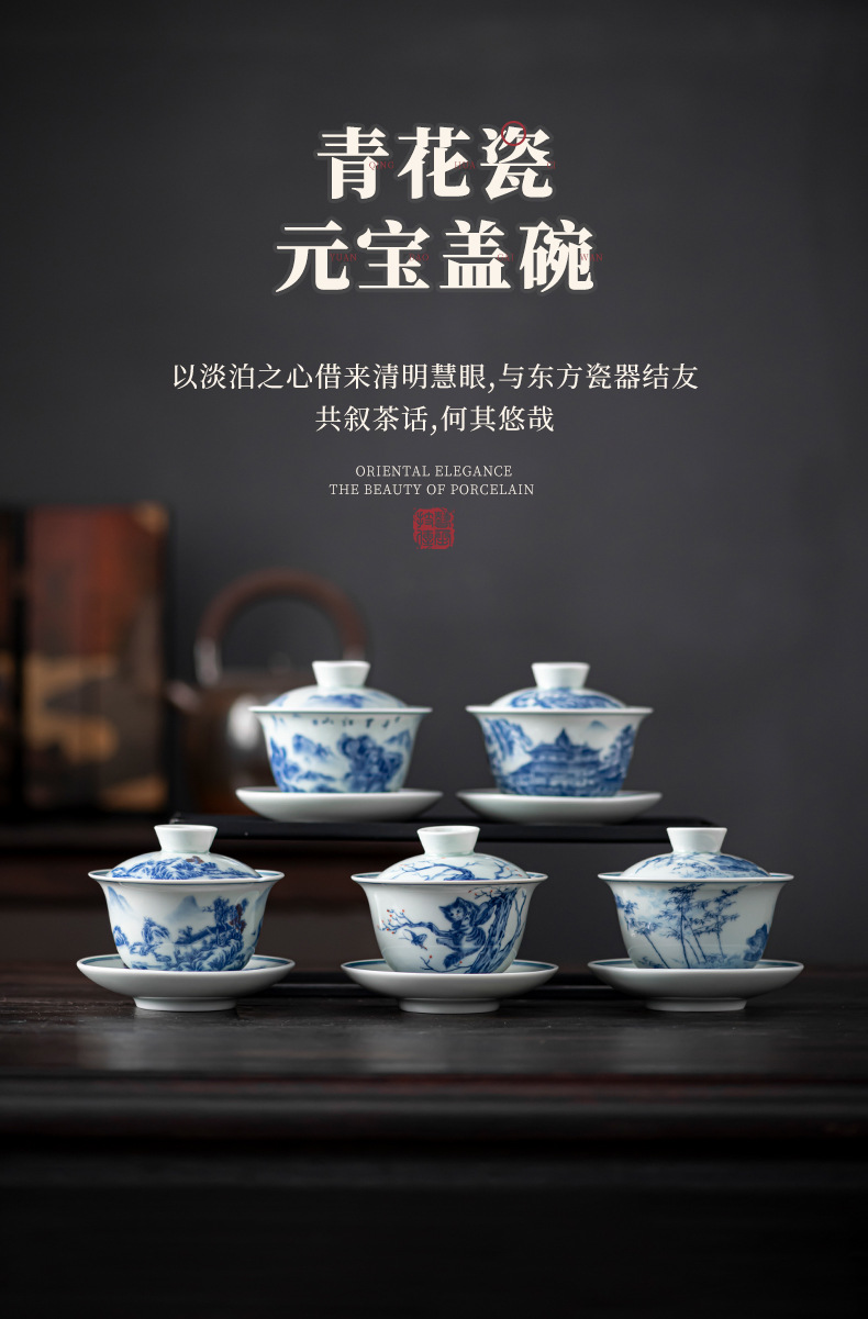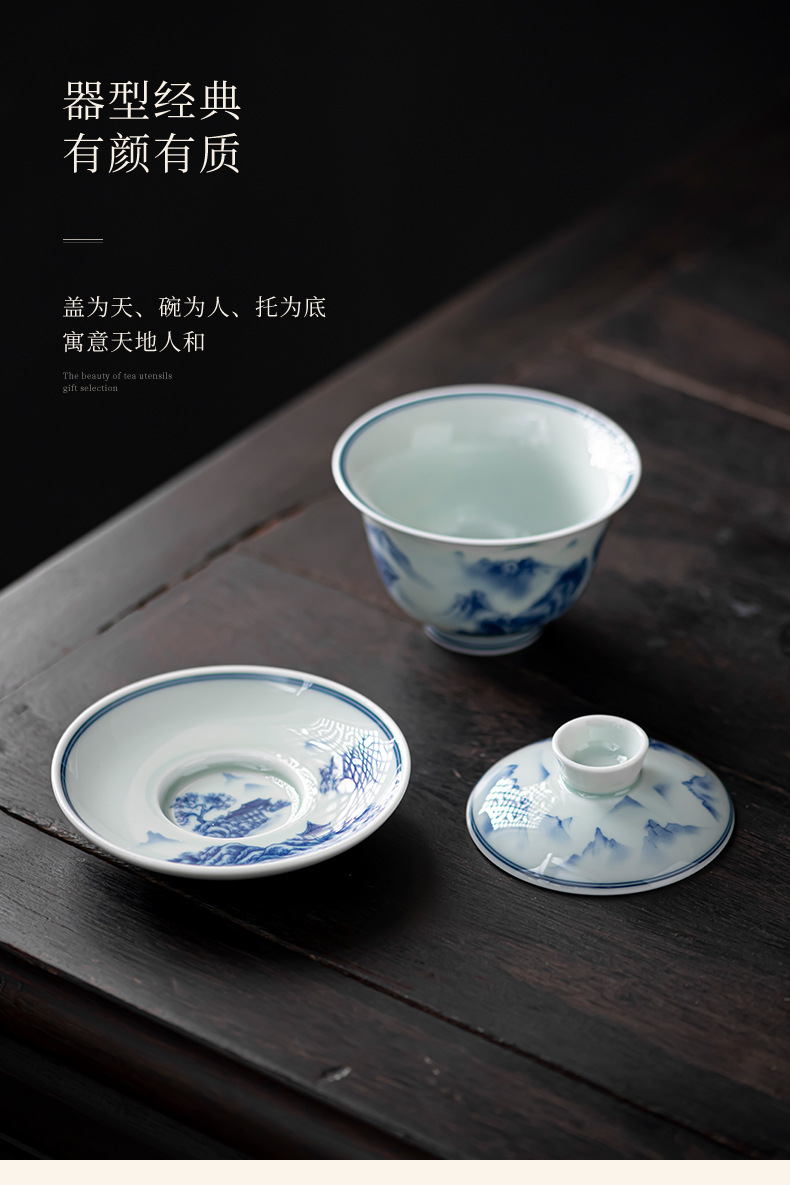 Bát có nắp ba tài cổ điển cốc trà đơn gốm sứ cao cấp bộ trà Kung Fu sứ trắng xanh bát pha trà cỡ lớn nhỏ có nắp