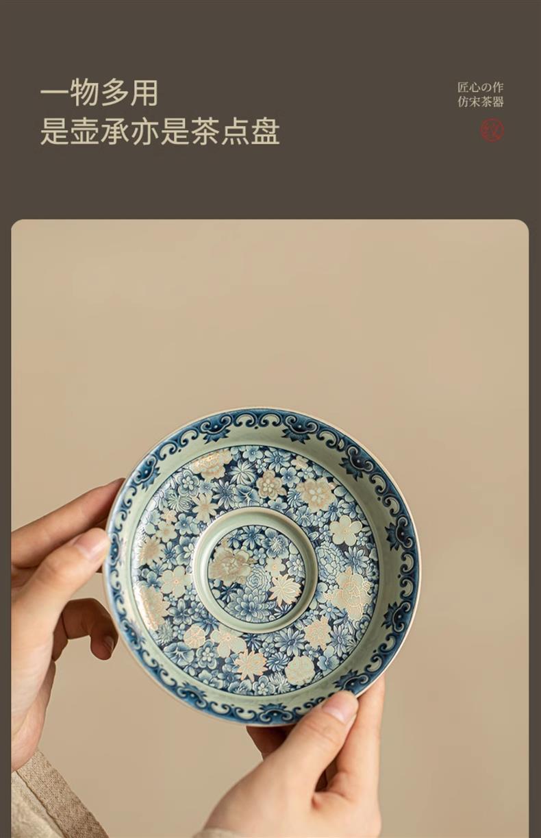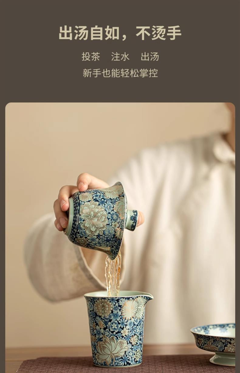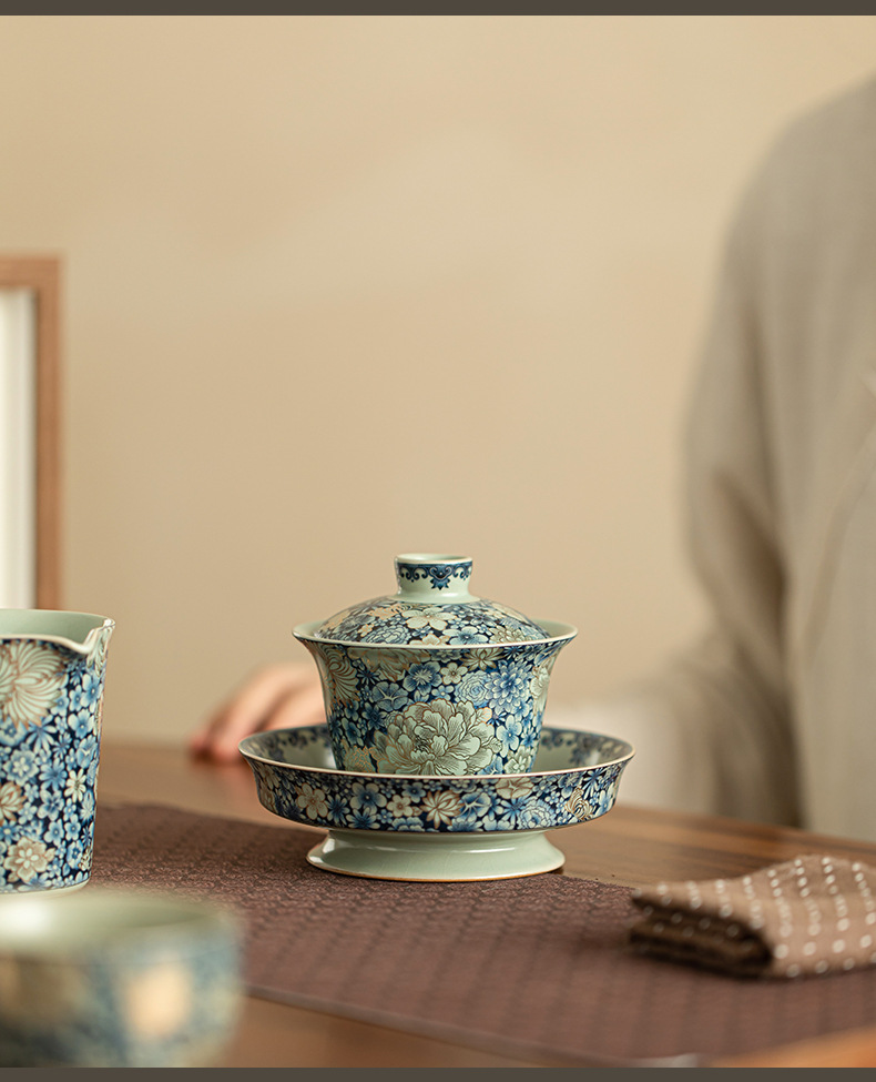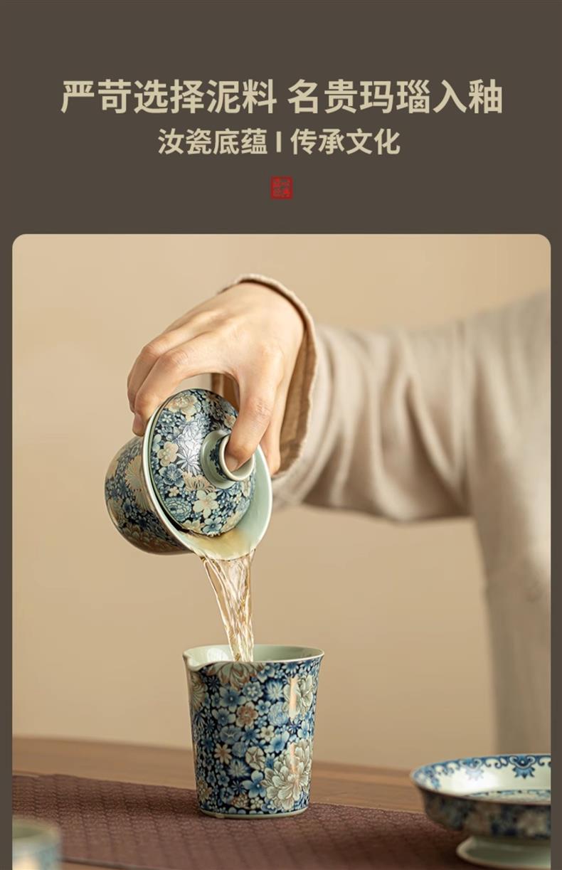 Bát có nắp ba tài hoa Ru Lò gốm gia dụng cao chân kiểu Trung Quốc cổ điển bàn pha trà phục vụ bát trà Kung Fu bộ trà bán buôn