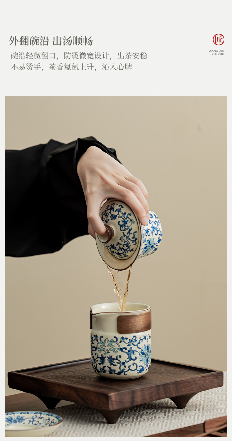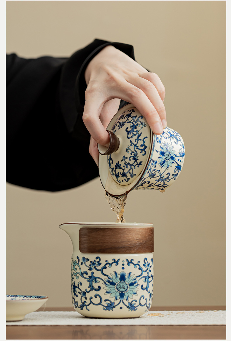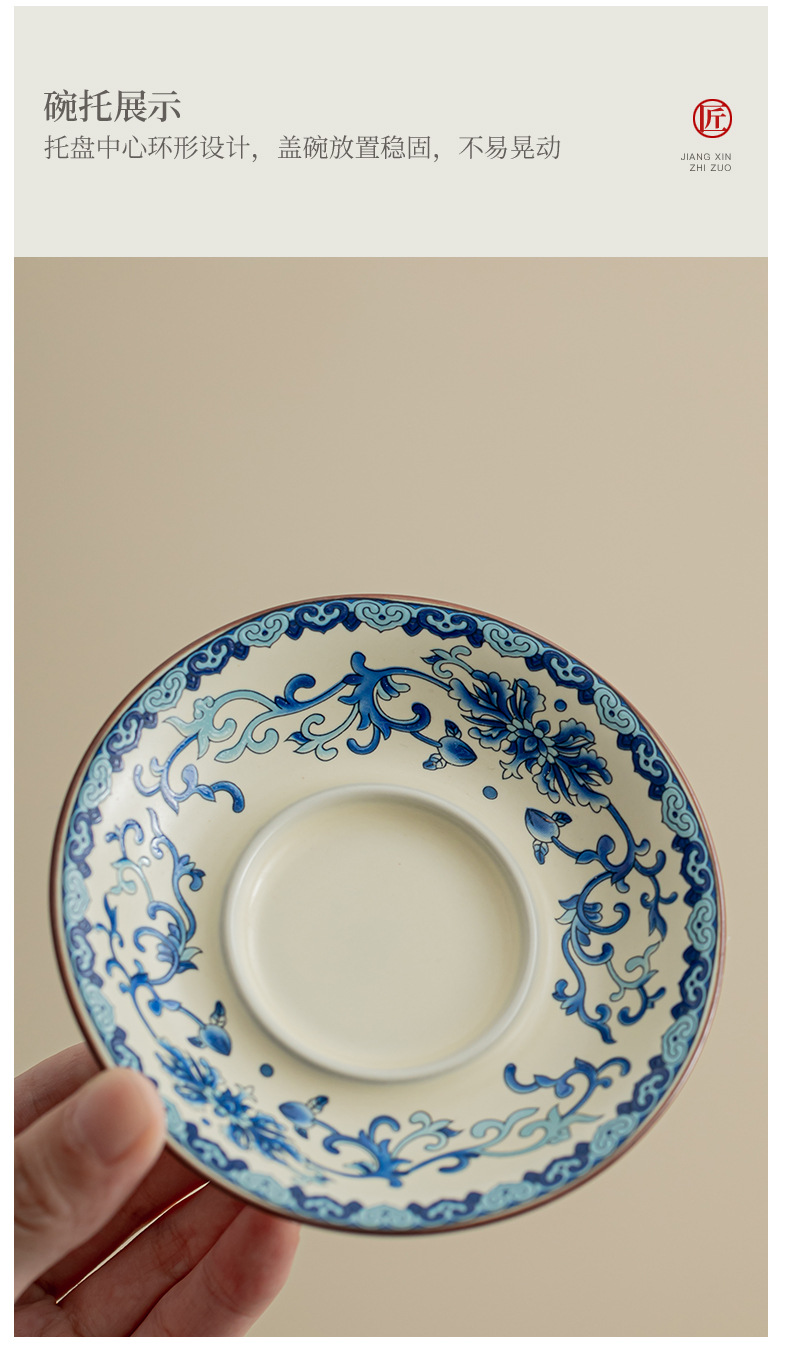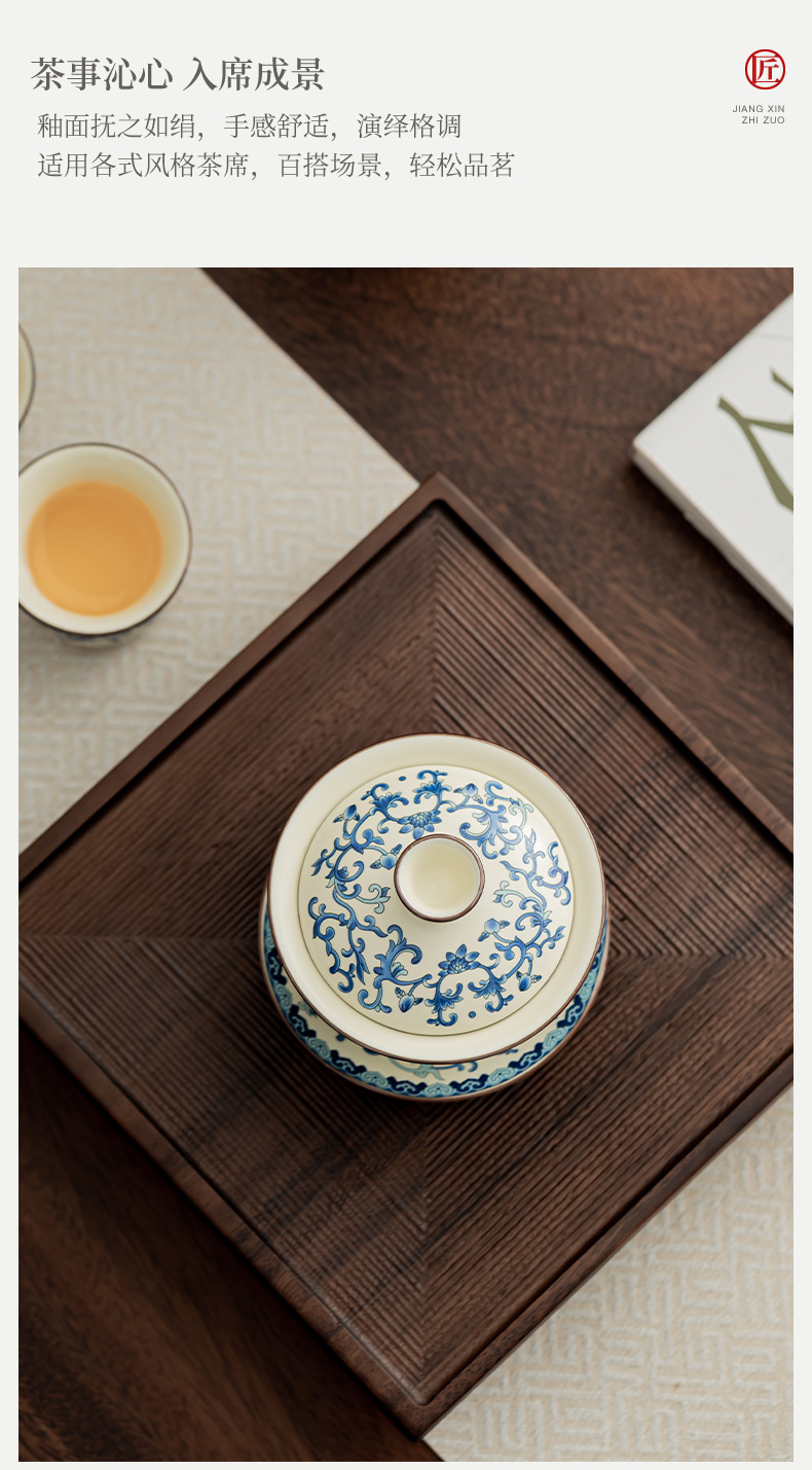 Bát có nắp ba tài màu xanh và trắng Ruyao Bộ ấm trà Kung Fu cổ điển Bát pha trà gốm sứ gia dụng có nắp không nóng