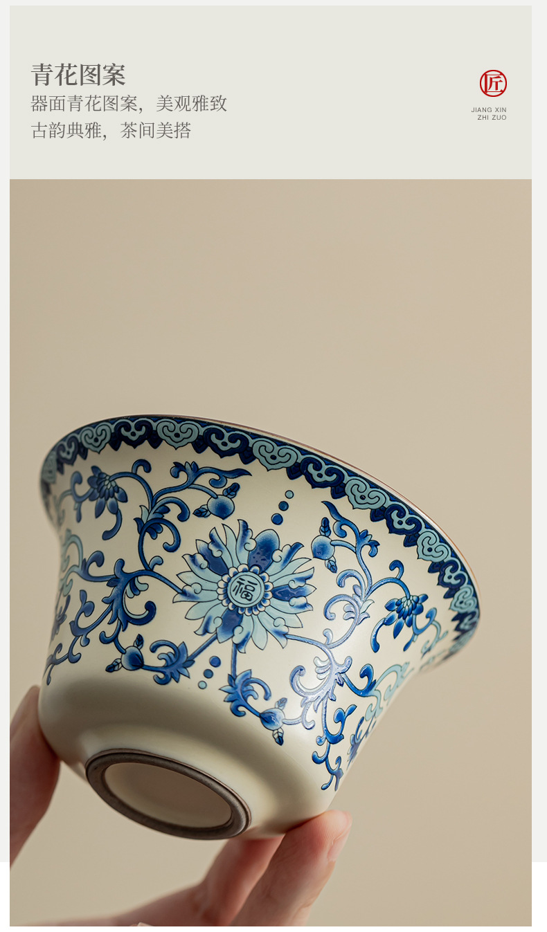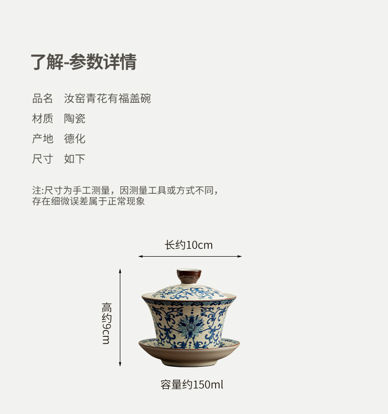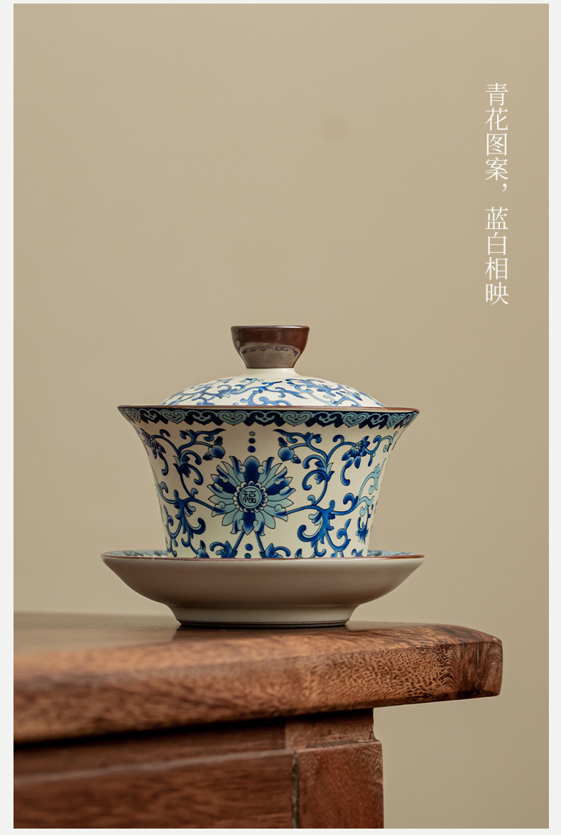- Bát có nắp ba tài màu xanh và trắng Ruyao Bộ ấm trà Kung Fu cổ điển Bát pha trà gốm sứ gia dụng có nắp không nóng