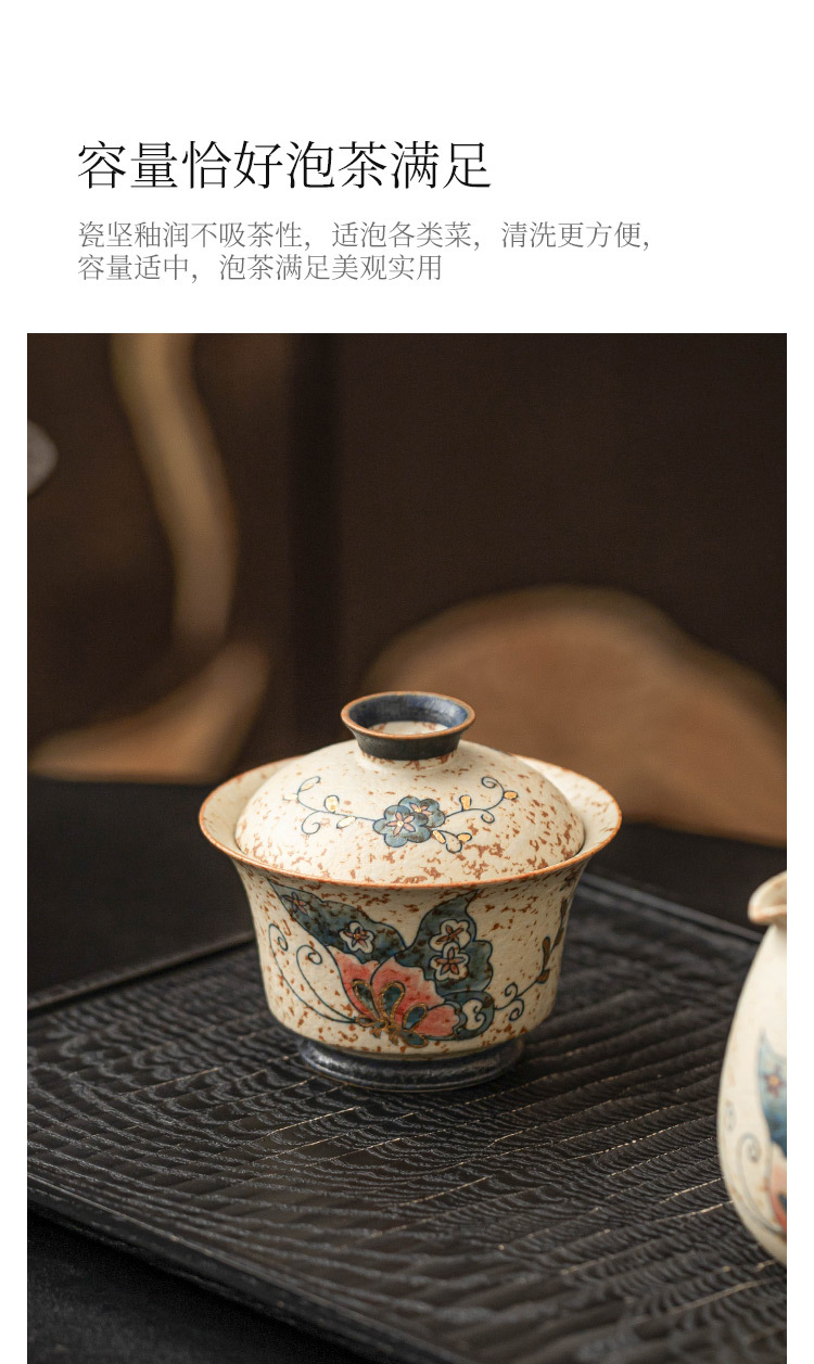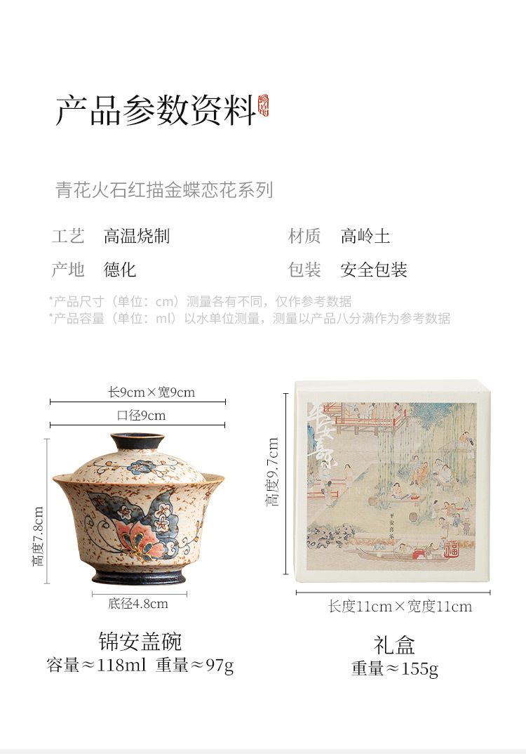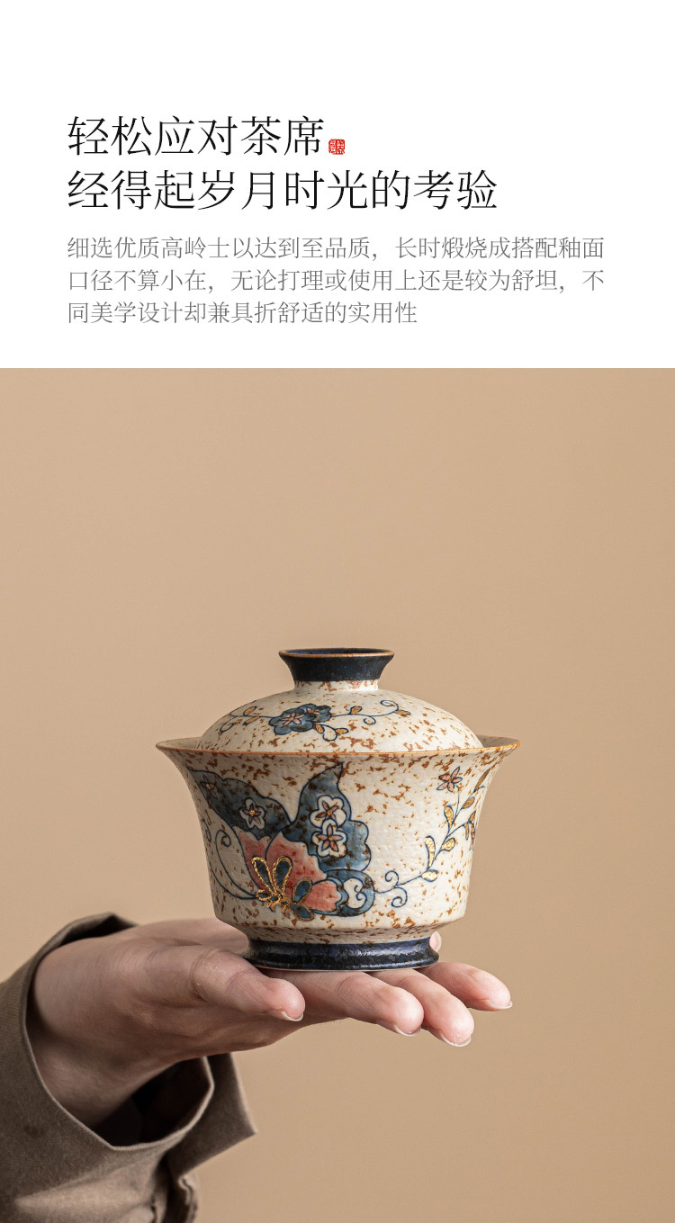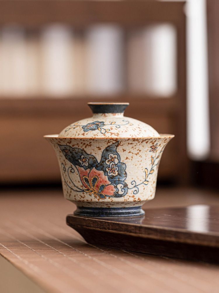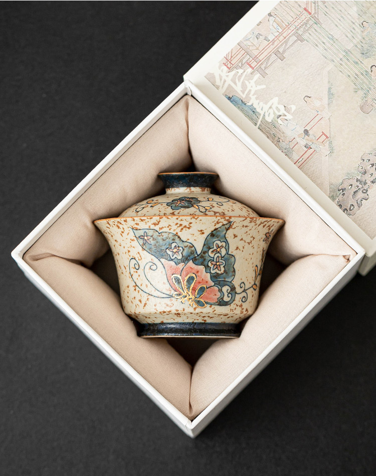- Bát có nắp bằng vàng sơn mài màu xanh và trắng, bát pha trà có nắp Jin'an, bộ trà gốm sứ hoa bướm vẽ tay, tách trà dung tích lớn