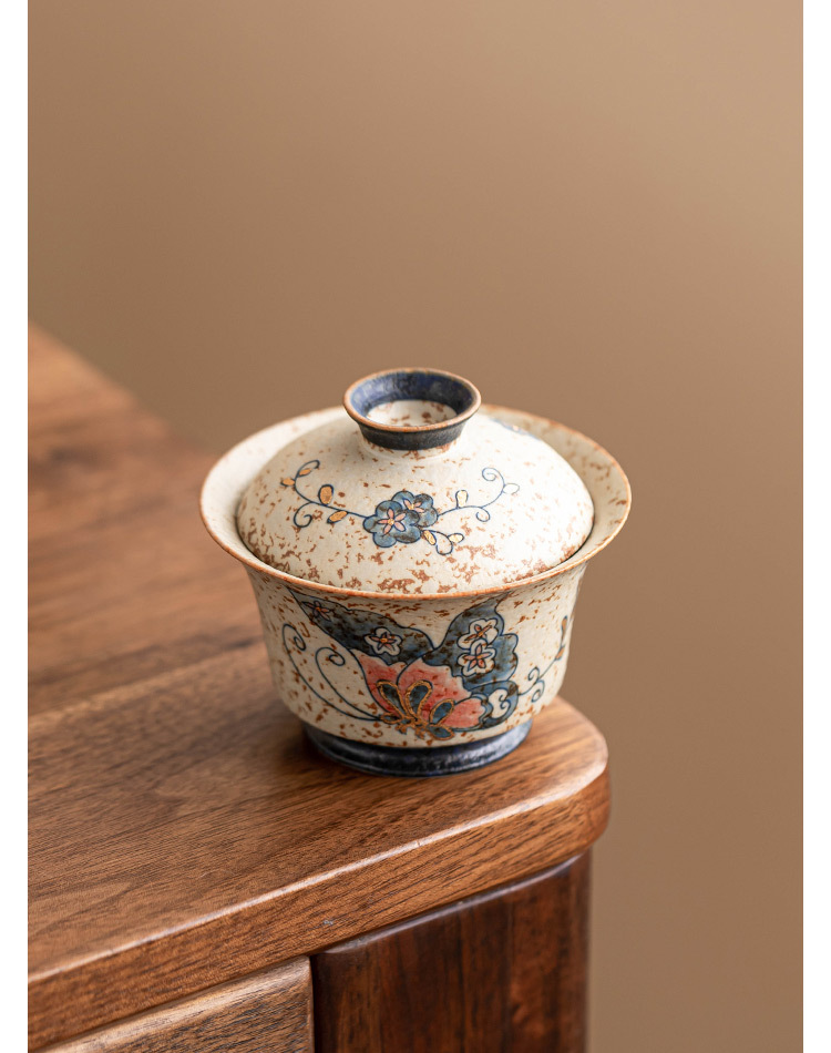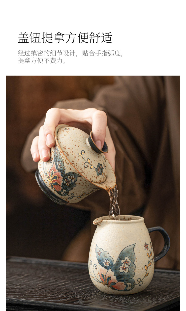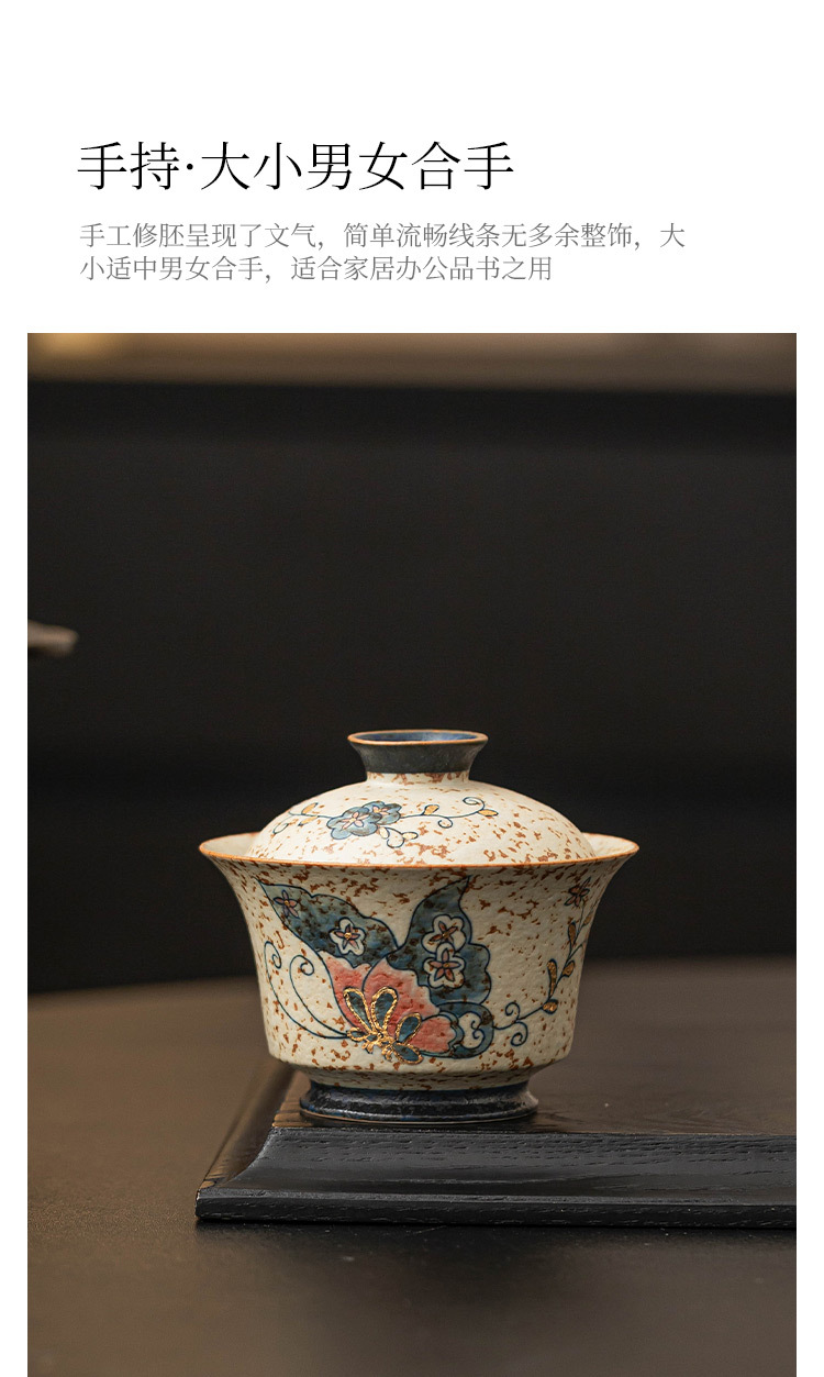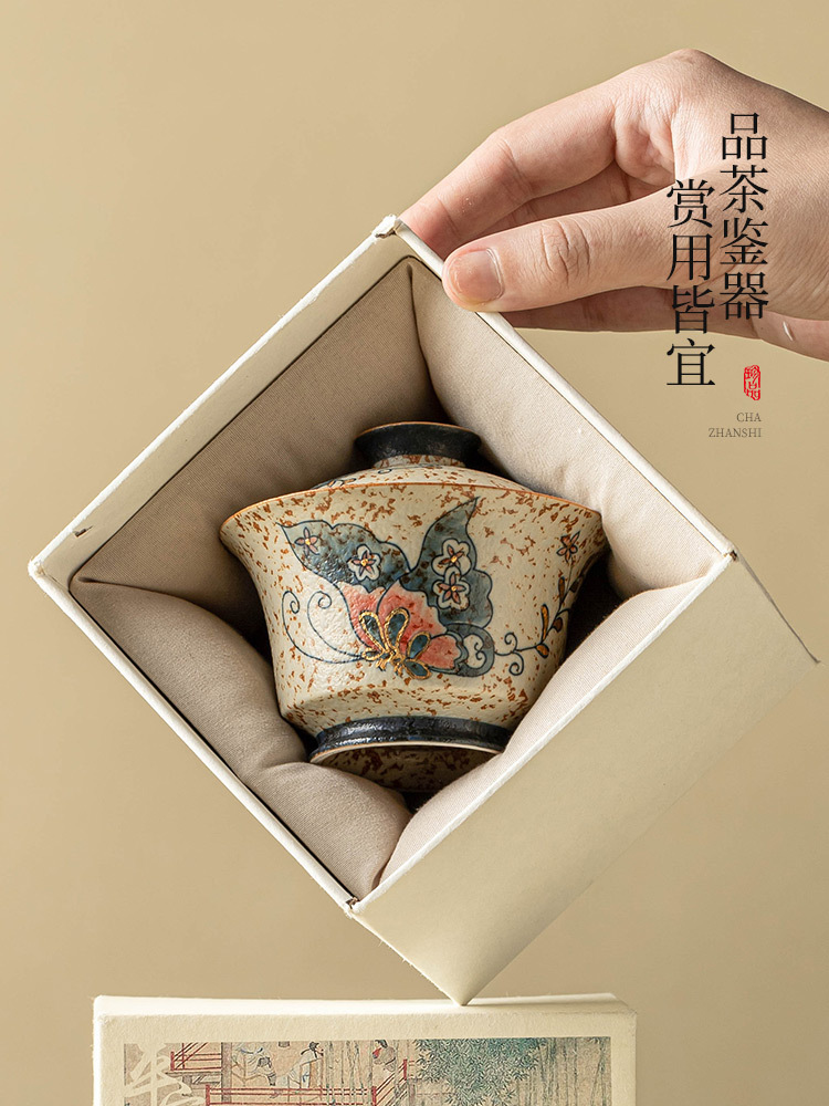 - Bát có nắp bằng vàng sơn mài màu xanh và trắng, bát pha trà có nắp Jin'an, bộ trà gốm sứ hoa bướm vẽ tay, tách trà dung tích lớn