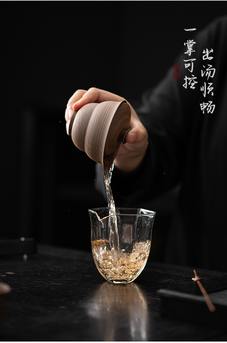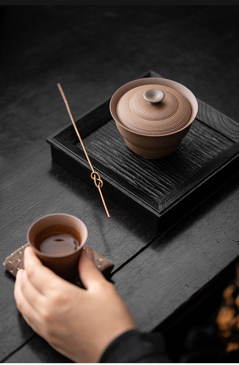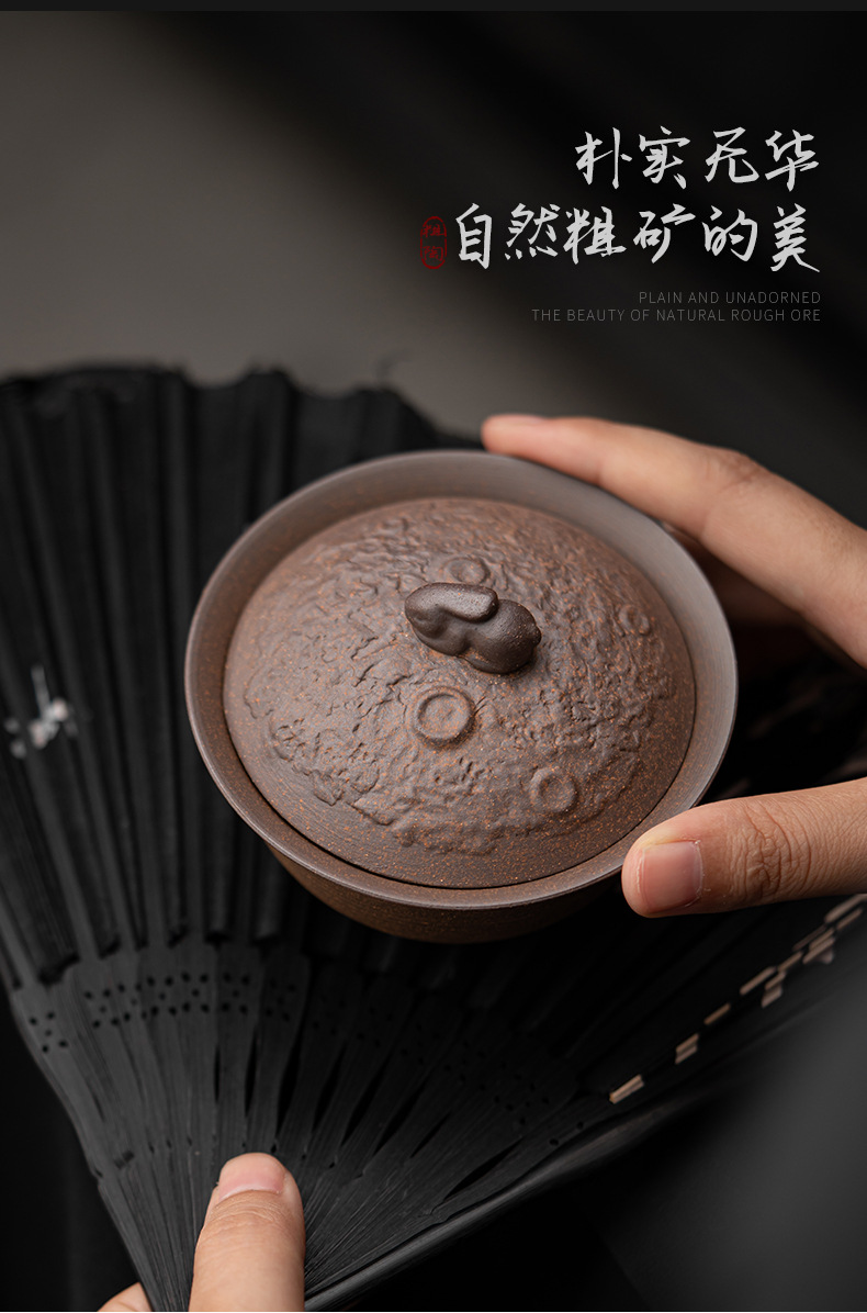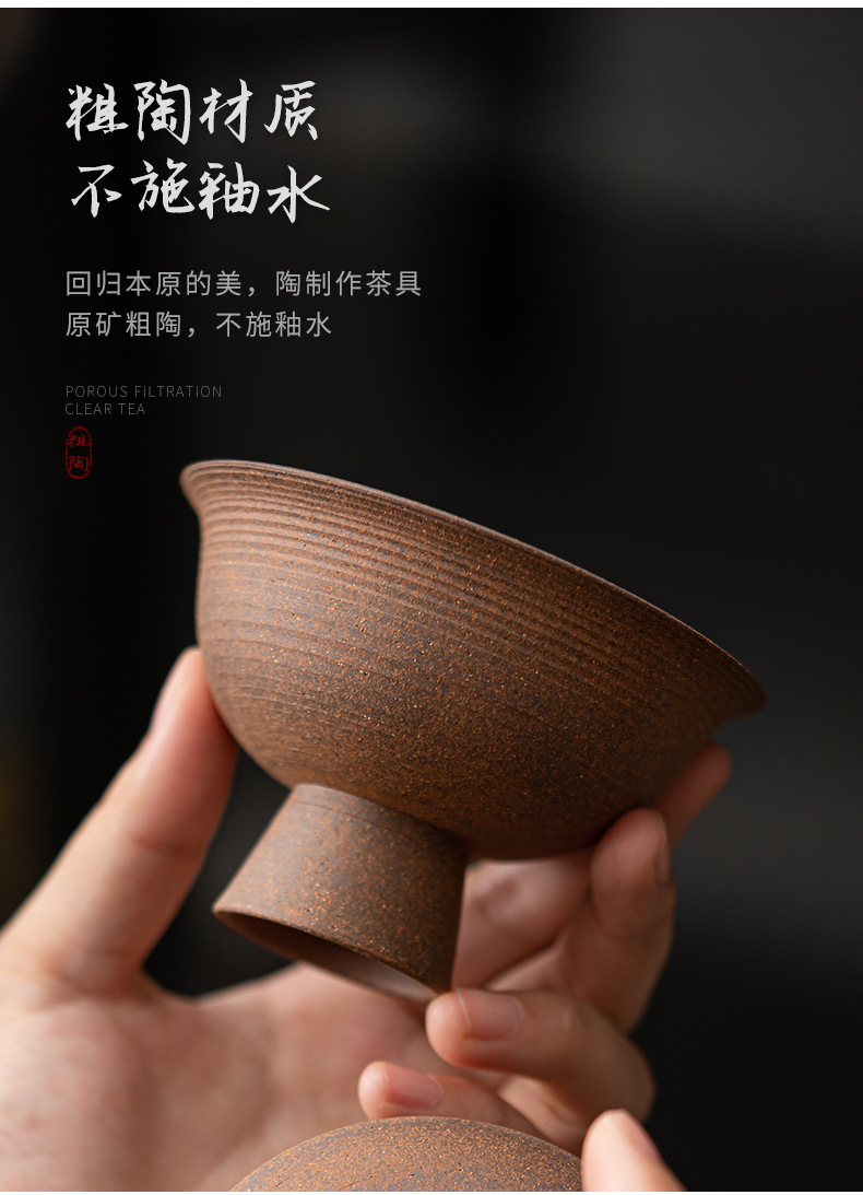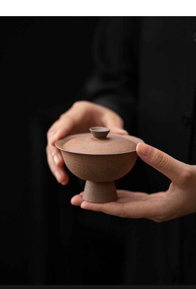 Bát có nắp chân cao bằng gốm thô đất sét ép tay, bộ trà Kung Fu cổ thủ công, bát pha trà, bát trà nhỏ chống bỏng gia dụng