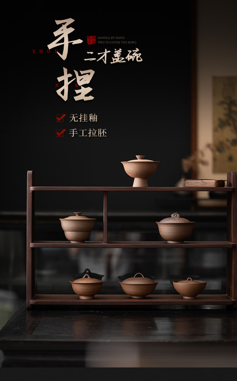 - Bát có nắp chân cao bằng gốm thô đất sét ép tay, bộ trà Kung Fu cổ thủ công, bát pha trà, bát trà nhỏ chống bỏng gia dụng
