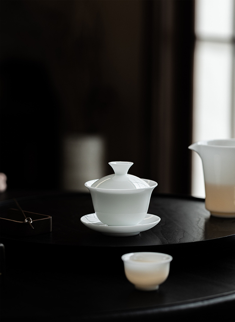 Bát Có Nắp Chuông sứ ngọc bích loại đá Bát có nắp đậy bằng sứ trắng Đức Hoa cốc trà gia dụng gốm sứ Bộ trà Kung Fu Bát pha trà