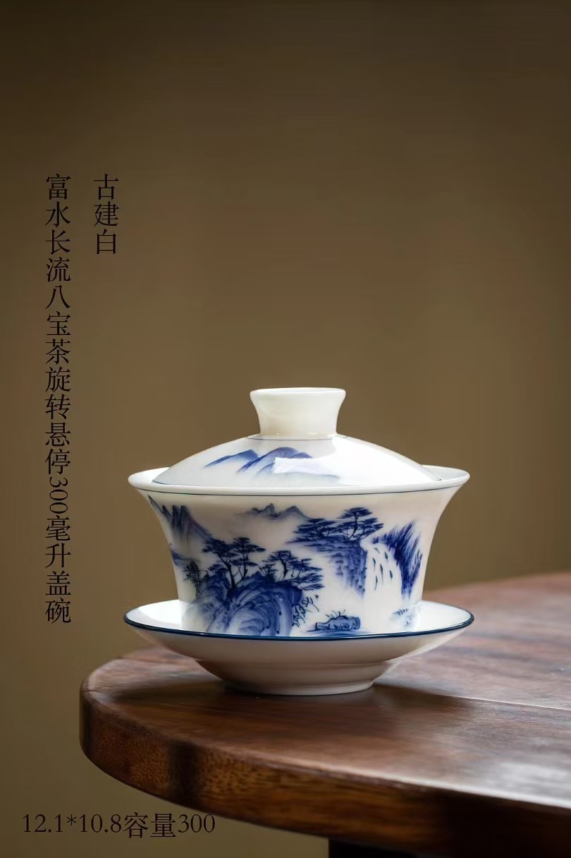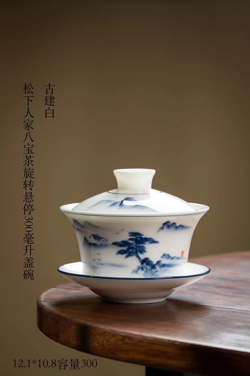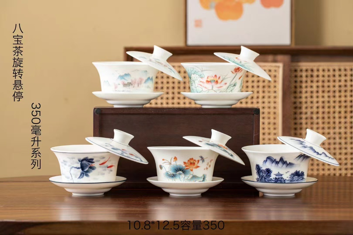 Bát có nắp di chuột bằng gốm sứ cỡ lớn Bộ trà sứ trắng Đức Hoa cao cấp không nóng bát pha trà tám báu