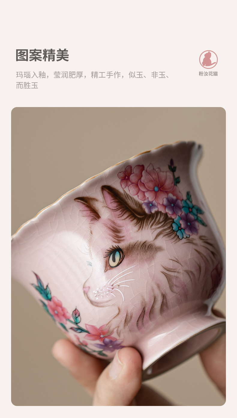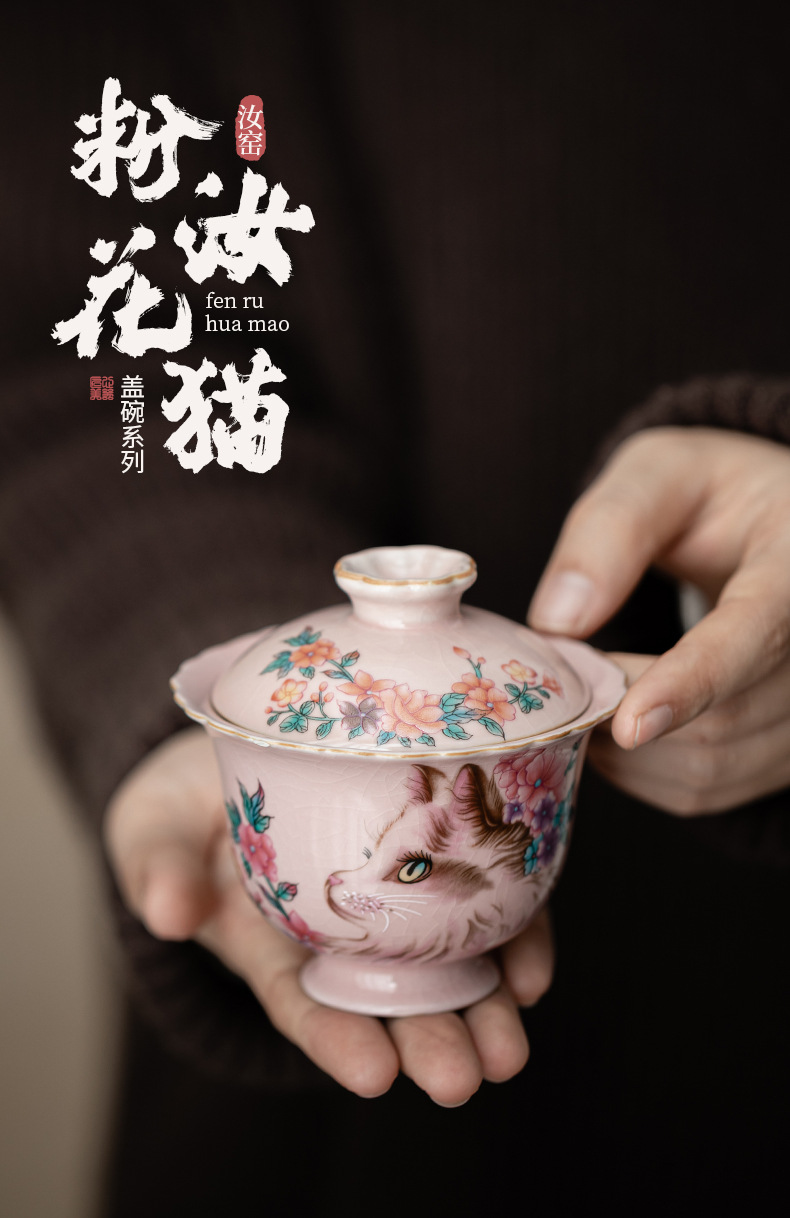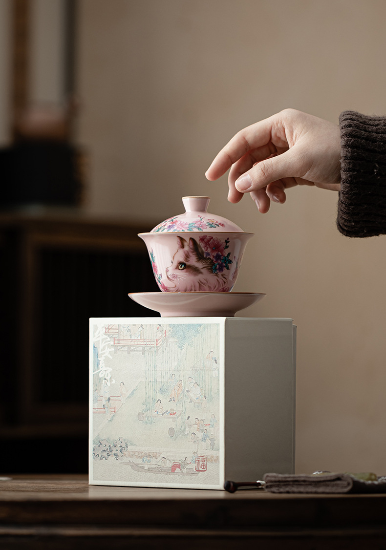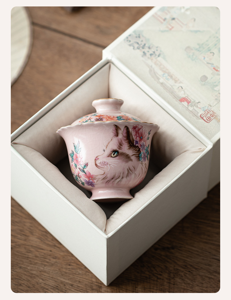 - Bát có nắp gốm sứ hình mèo hồng cổ dụng dụng cụ pha trà có nắp tách trà bát pha trà hộp quà