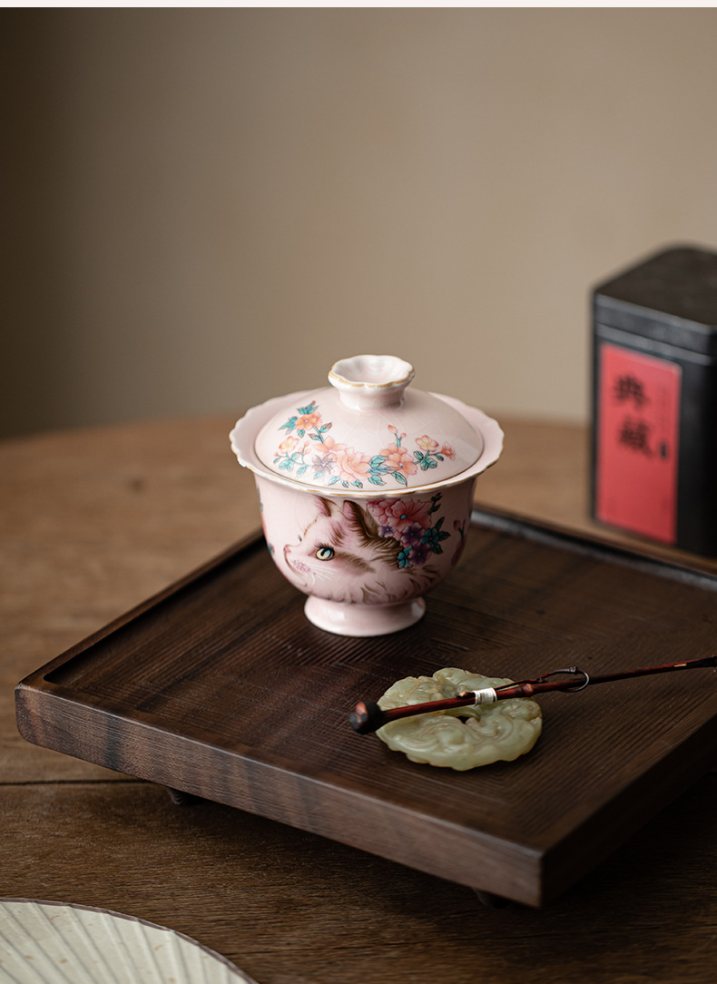 Bát có nắp gốm sứ hình mèo hồng cổ dụng dụng cụ pha trà có nắp tách trà bát pha trà hộp quà