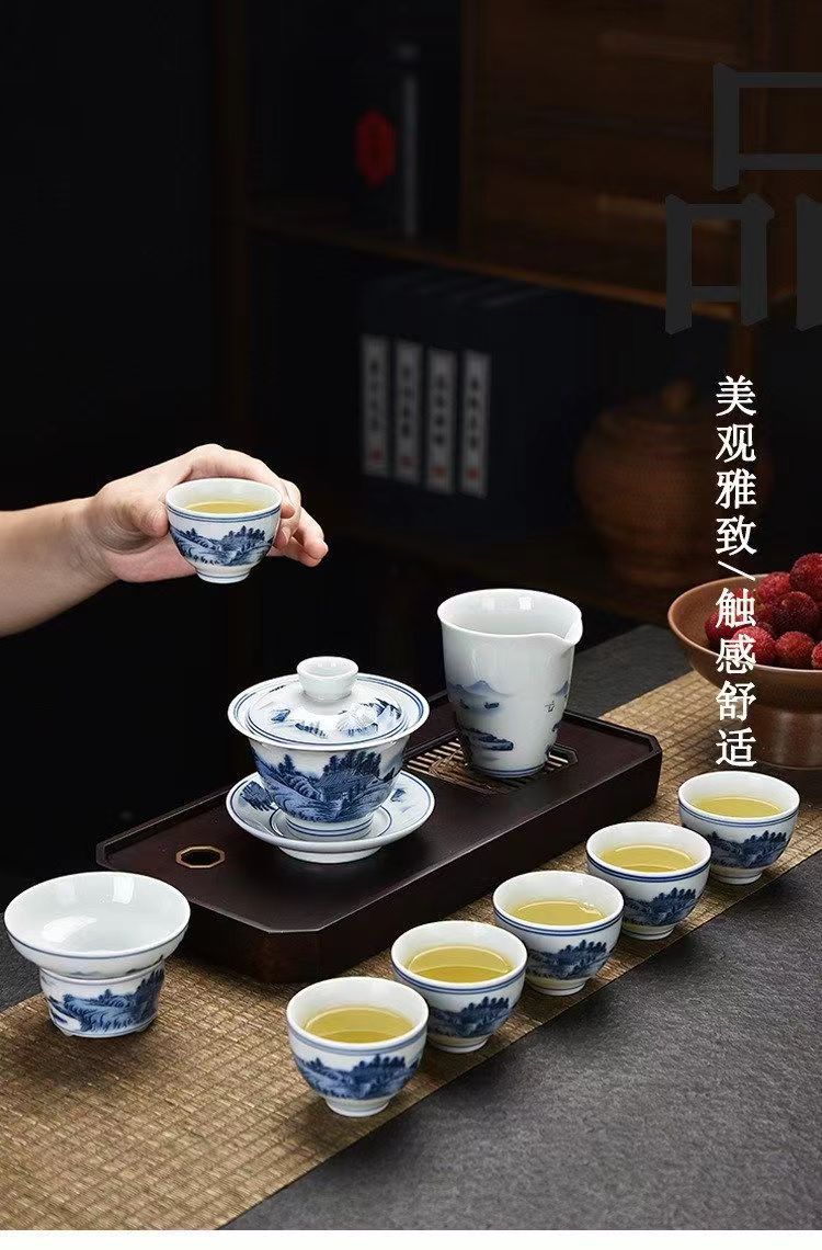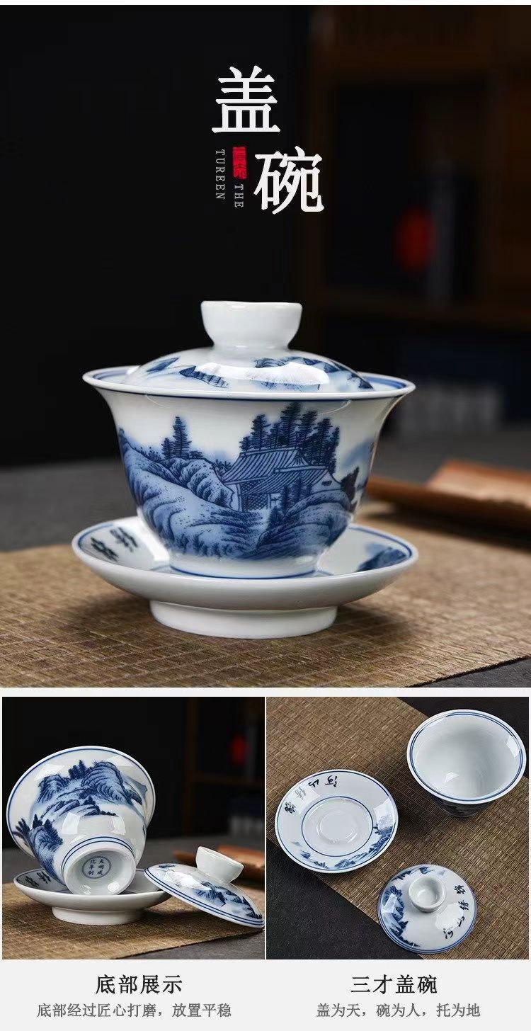 - Bát Có Nắp gốm sứ Jingdezhen Bát Có Nắp sứ trắng xanh gia dụng Bát pha trà Bát có nắp tam tài cỡ lớn Cốc trà Kung Fu