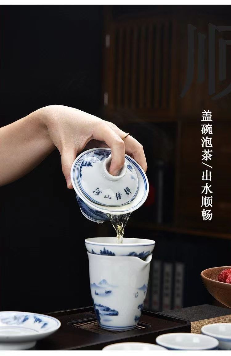 Bát Có Nắp gốm sứ Jingdezhen Bát Có Nắp sứ trắng xanh gia dụng Bát pha trà Bát có nắp tam tài cỡ lớn Cốc trà Kung Fu