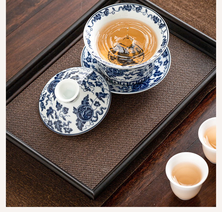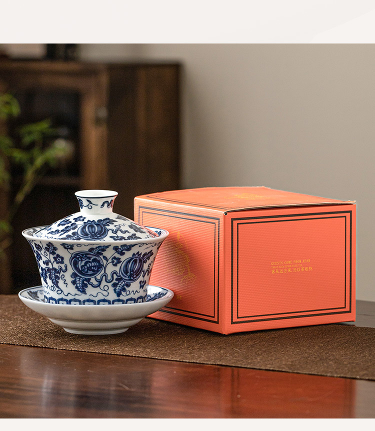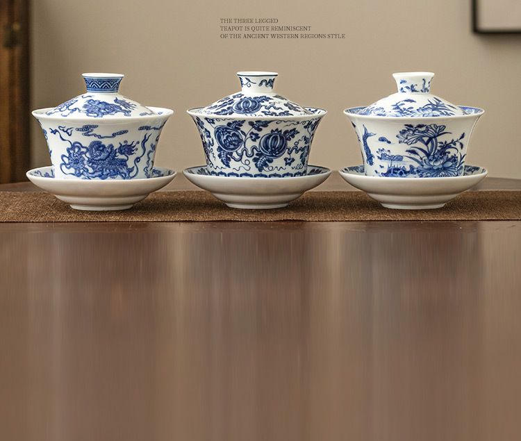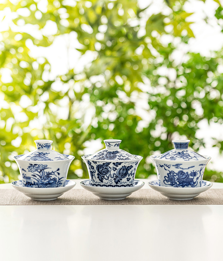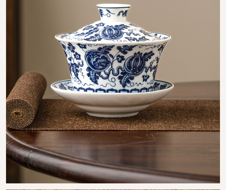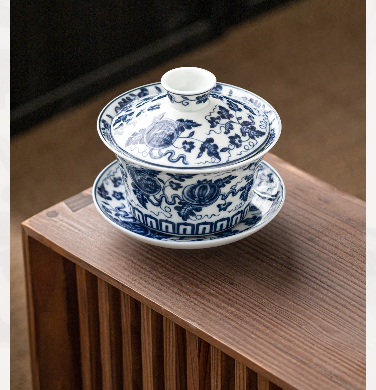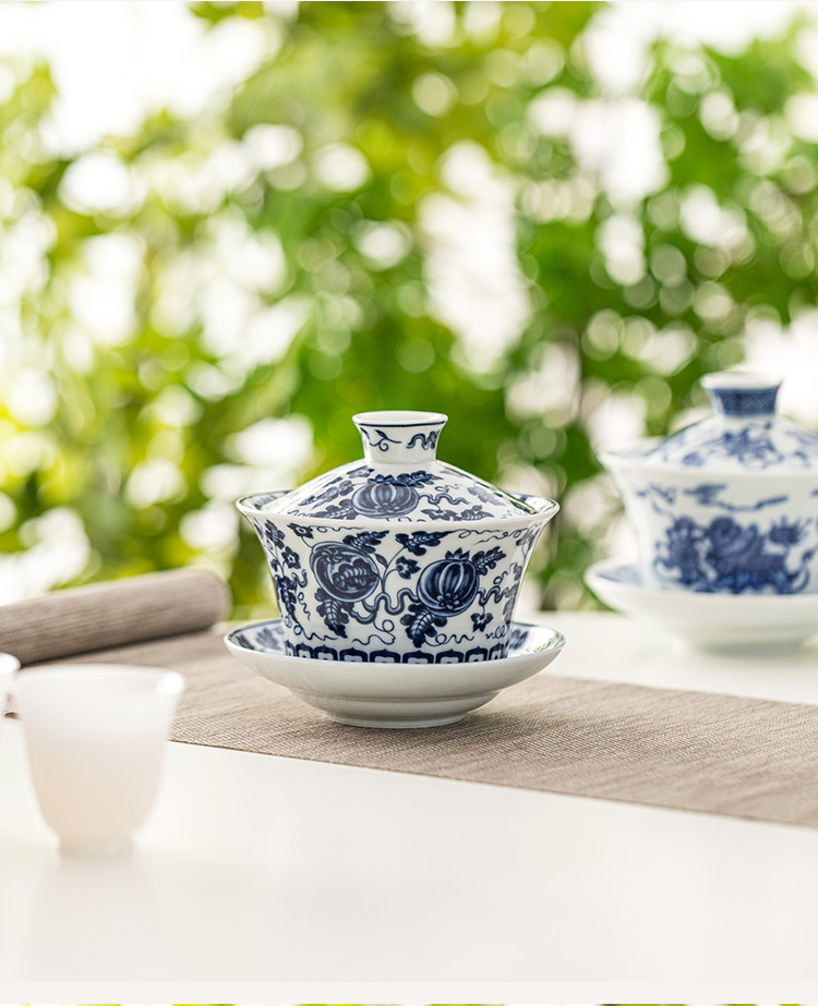 Bát có nắp gốm trắng xanh Bộ trà Kung Fu màu xanh lá cây bóng lớn đơn bát pha trà cổ điển cốc trà tôn trọng bát ba tài chống bỏng