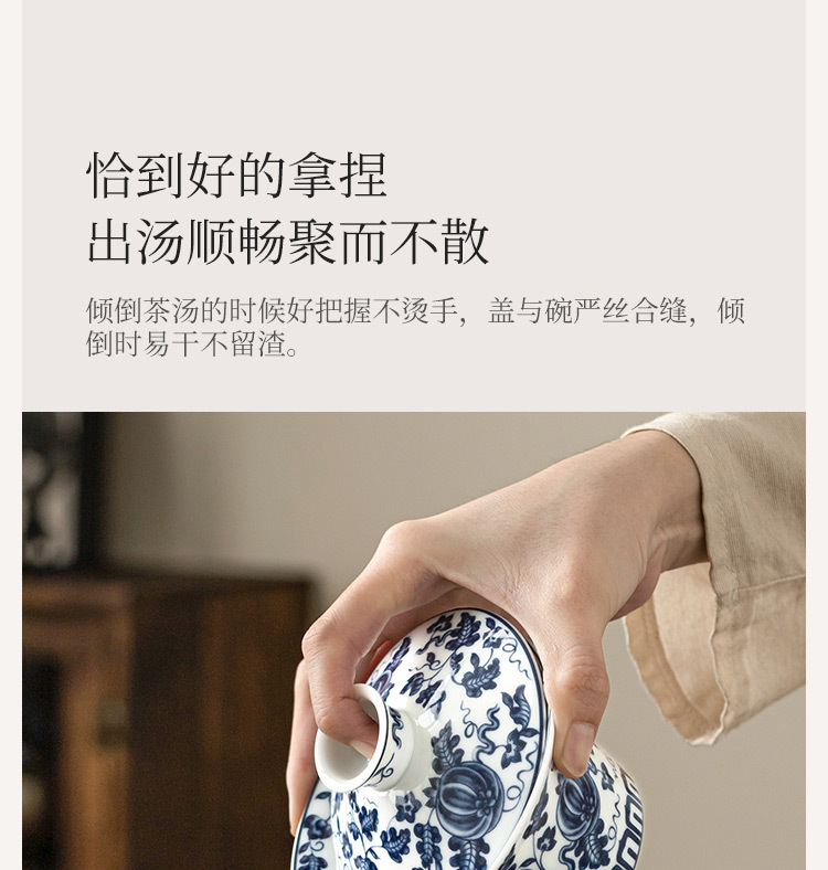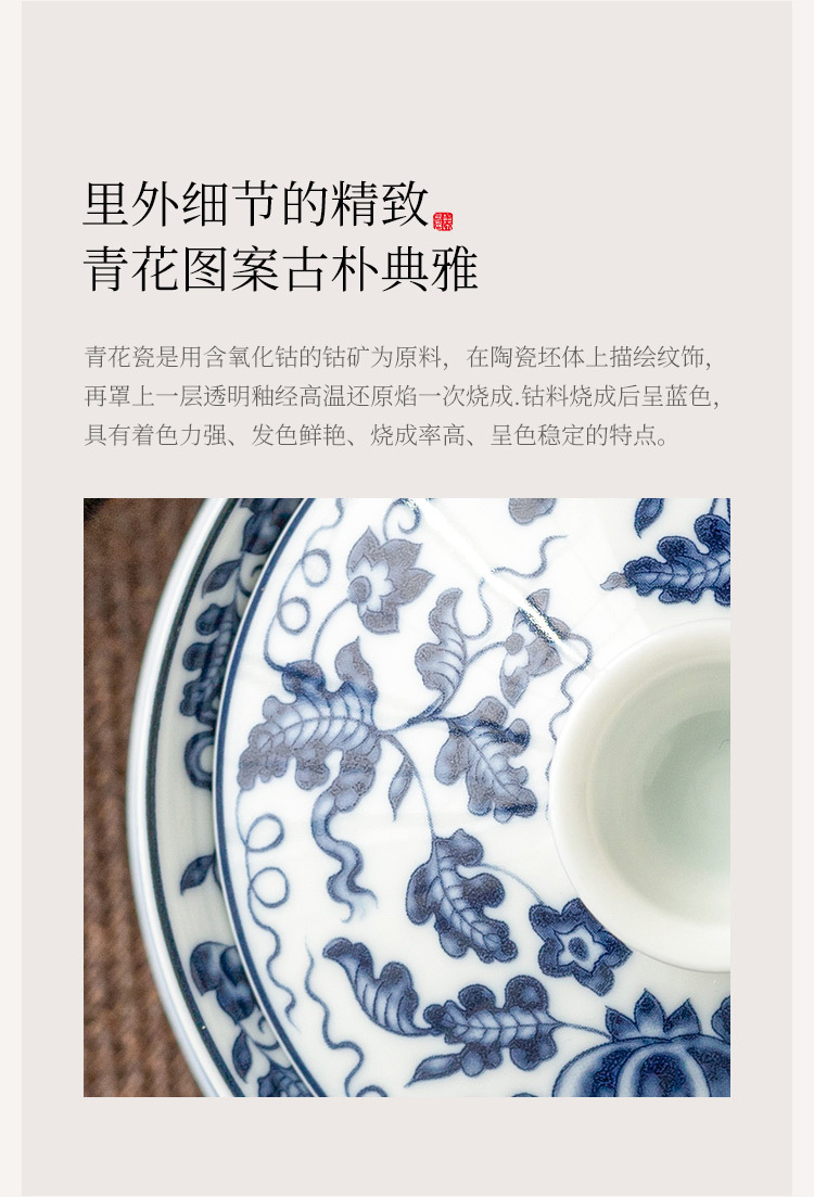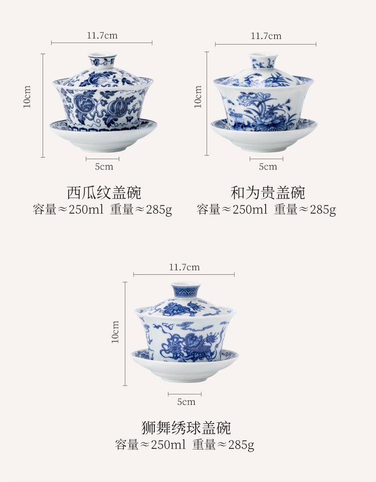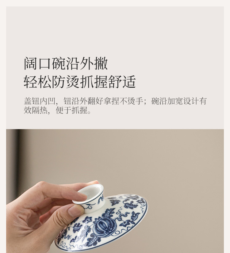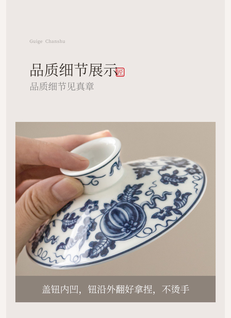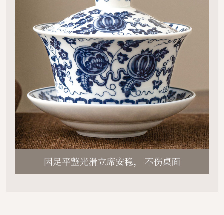 Bát có nắp gốm trắng xanh Bộ trà Kung Fu màu xanh lá cây bóng lớn đơn bát pha trà cổ điển cốc trà tôn trọng bát ba tài chống bỏng