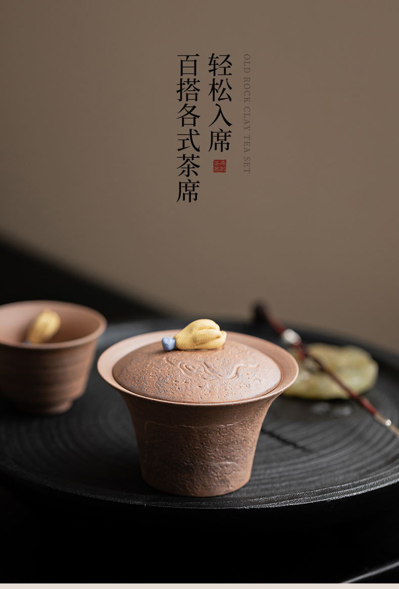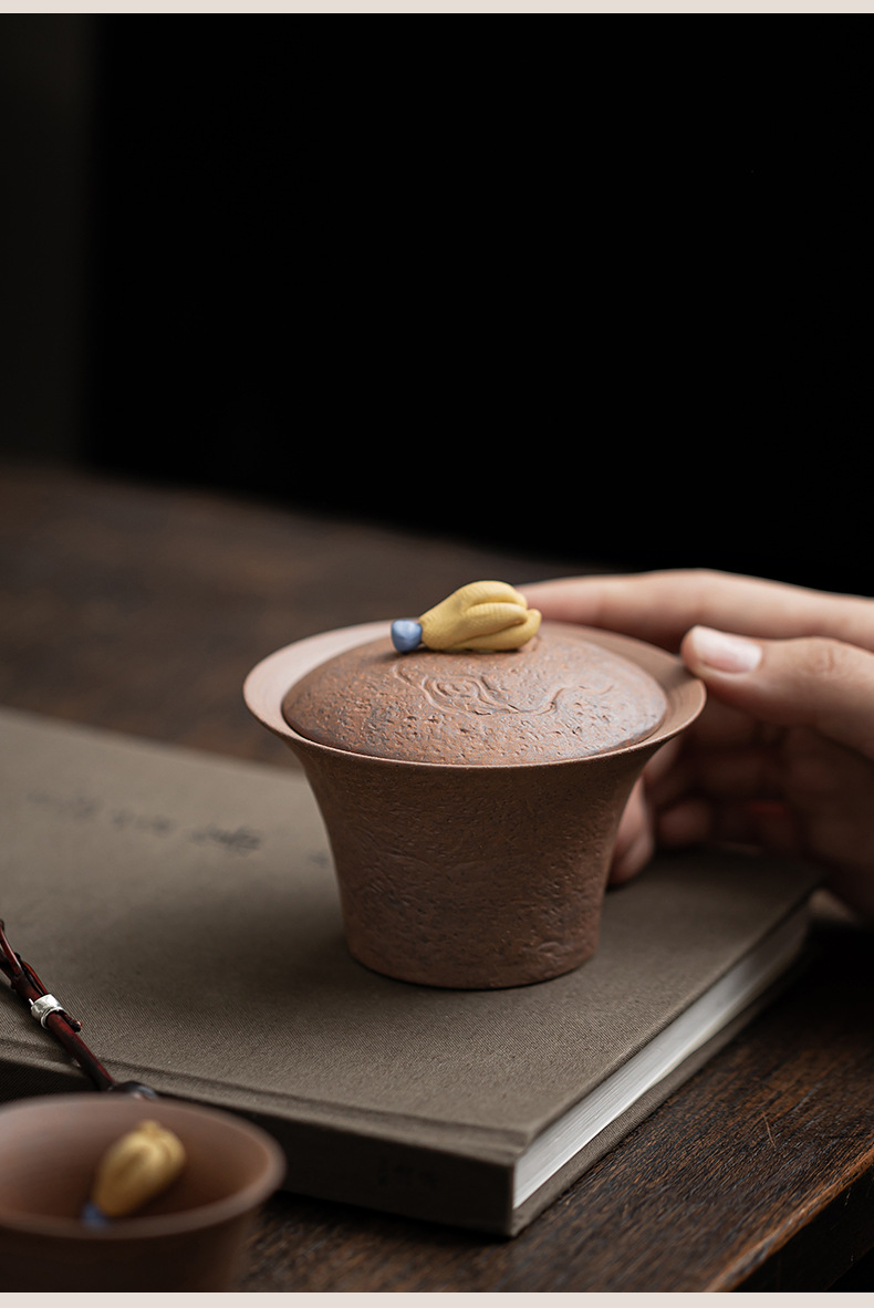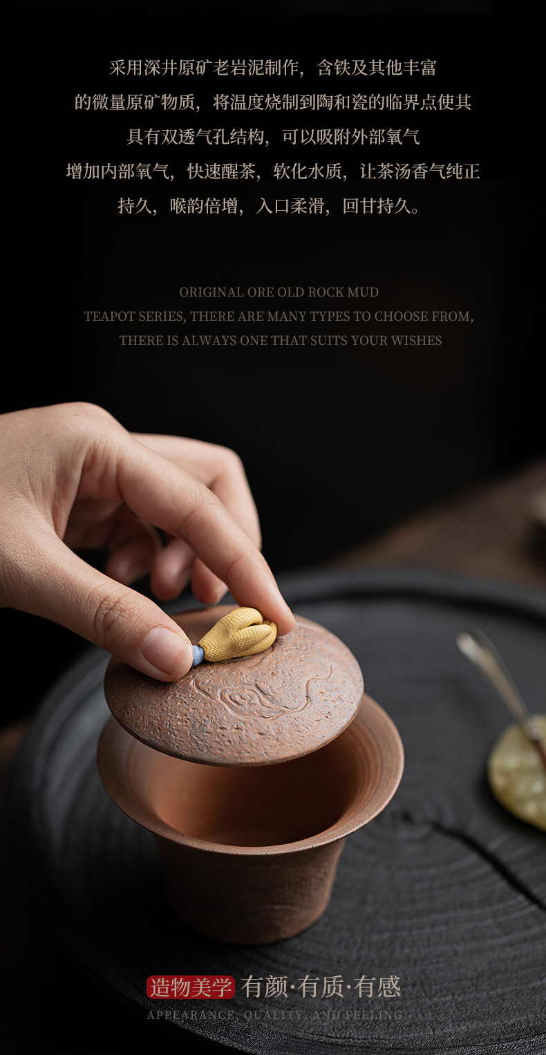 Bát có nắp hai bầu su Xiangyun, bát pha trà gia dụng cổ điển đất sét đá cũ, cốc trà có nắp, bộ trà Kung Fu gốm sứ