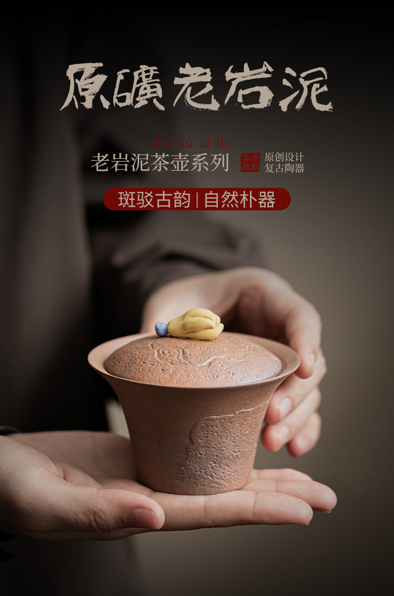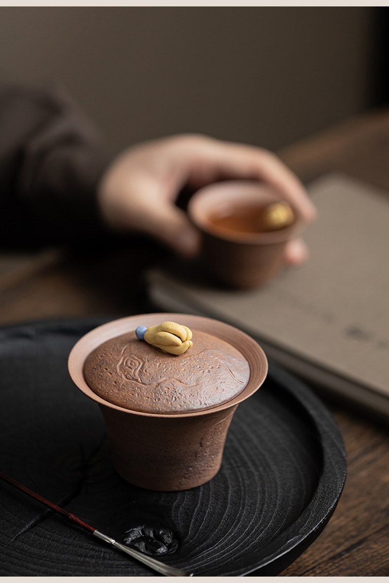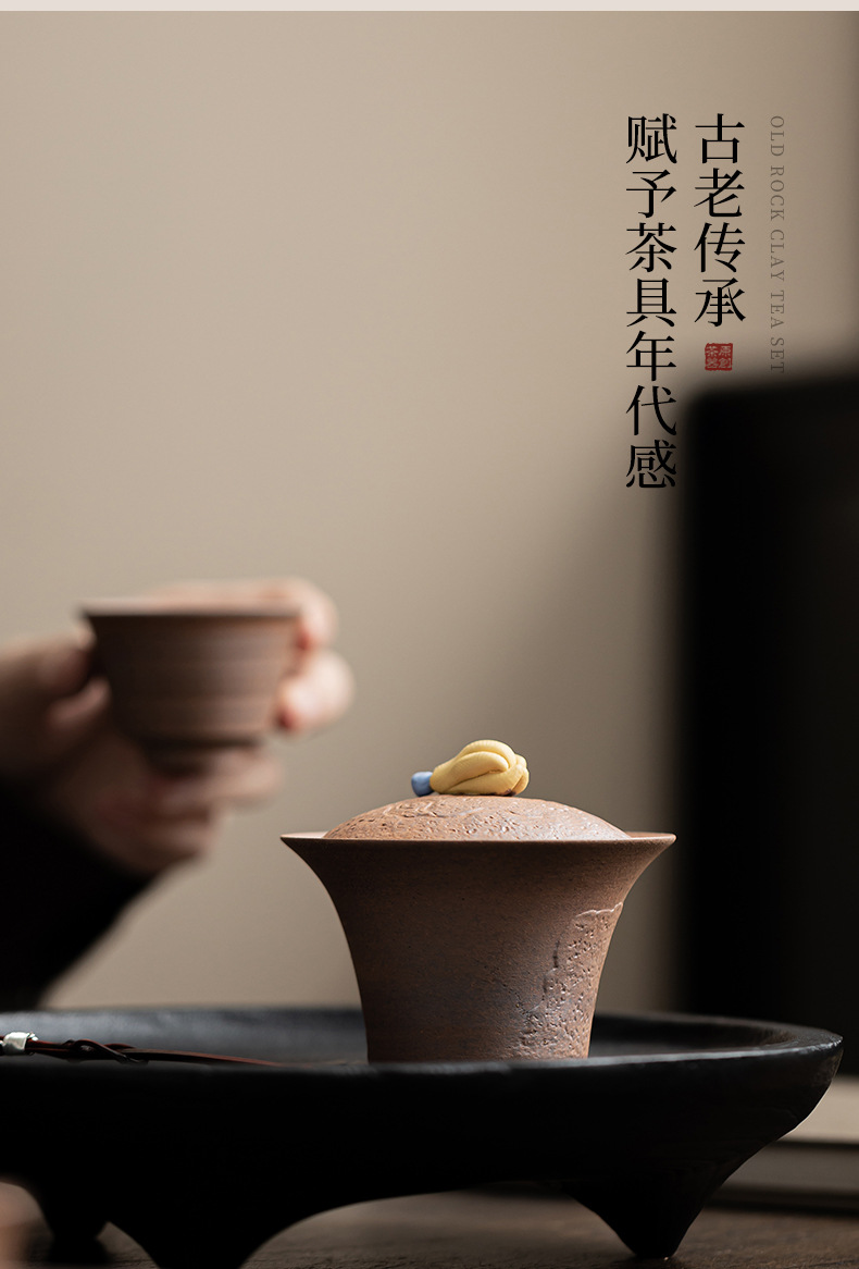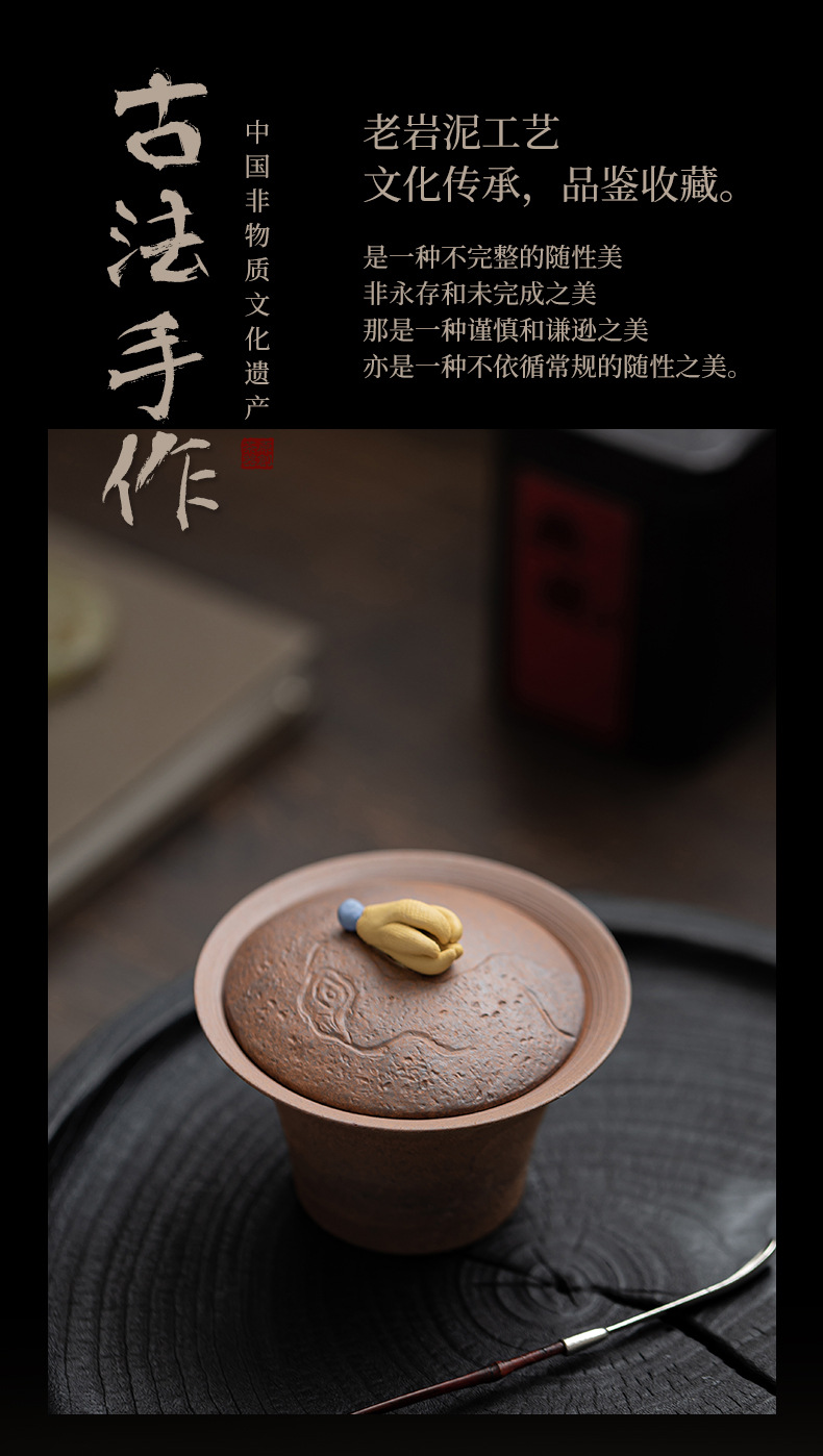 Bát có nắp hai bầu su Xiangyun, bát pha trà gia dụng cổ điển đất sét đá cũ, cốc trà có nắp, bộ trà Kung Fu gốm sứ