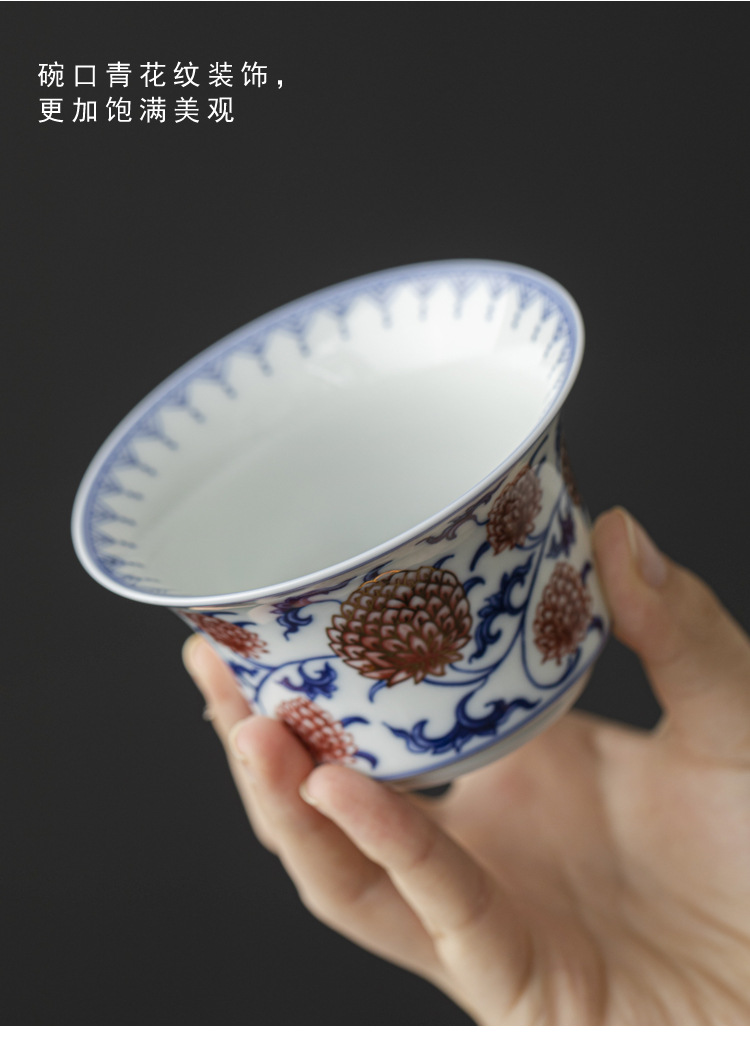 Bát có nắp hoa sen kim cương đỏ tráng men xanh cổ bộ trà gốm sứ cổ điển tô có nắp bằng vàng cốc trà bán buôn