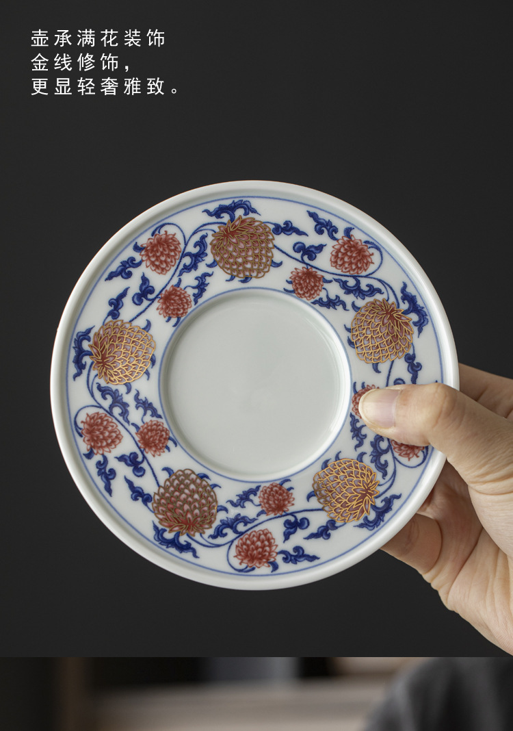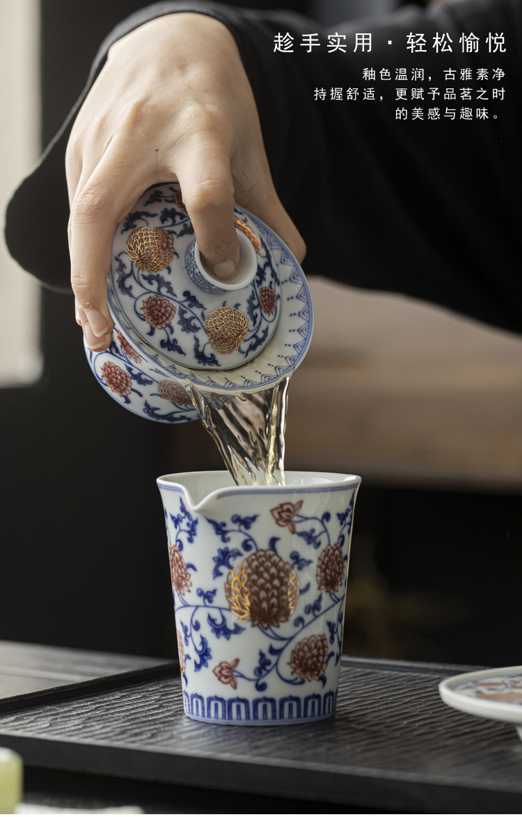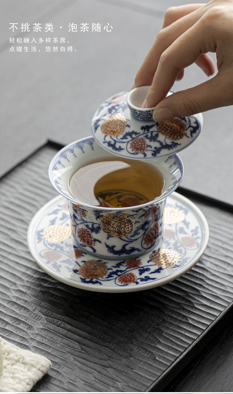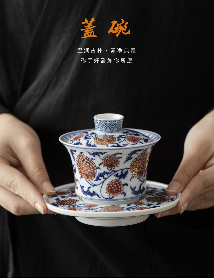 - Bát có nắp hoa sen kim cương đỏ tráng men xanh cổ bộ trà gốm sứ cổ điển tô có nắp bằng vàng cốc trà bán buôn