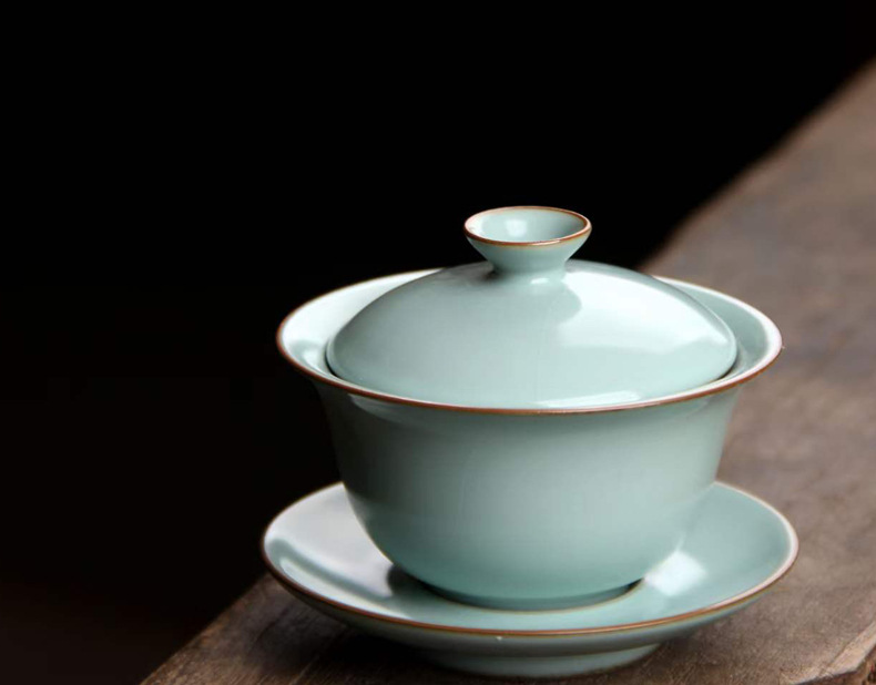 Bát có nắp lò Ru nhiệt độ cao, bát pha trà cốc ba tài cao cấp đơn, bộ ấm trà Kung Fu bằng sứ màu đặc có thể nuôi bằng gốm mở cỡ lớn