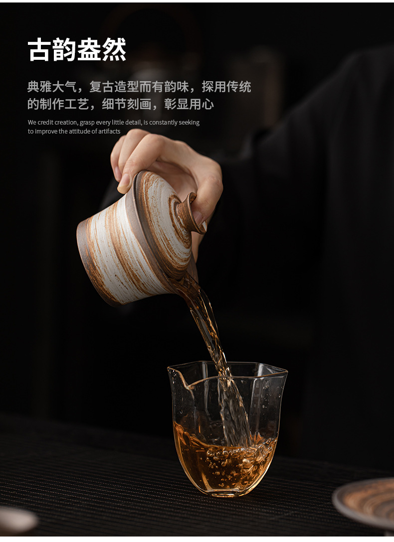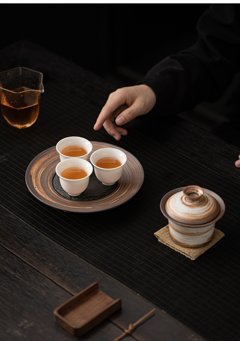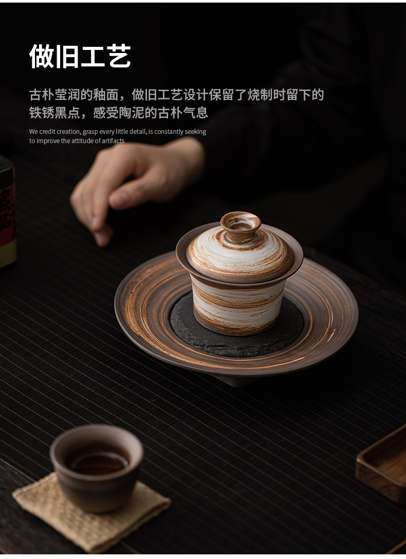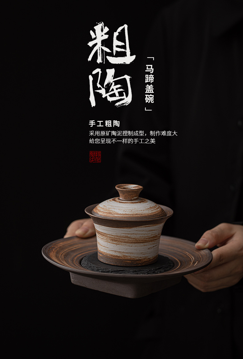 Bát có nắp móng ngựa trắng Wabi-Jiying Bát đựng trà cổ điển thủ công Bát có nắp tam tài gia dụng dụng cụ pha trà công phu gốm thô