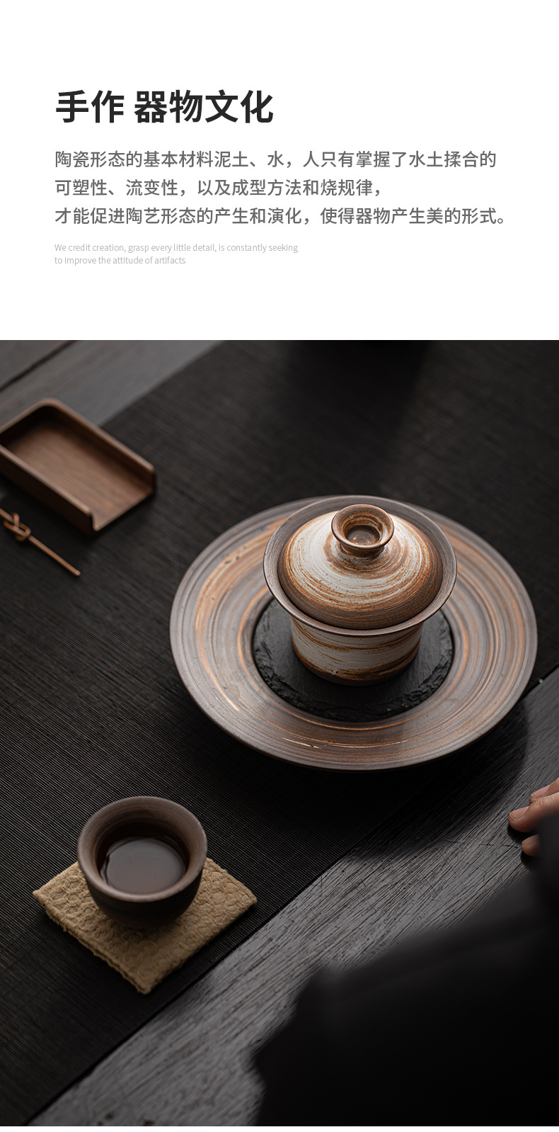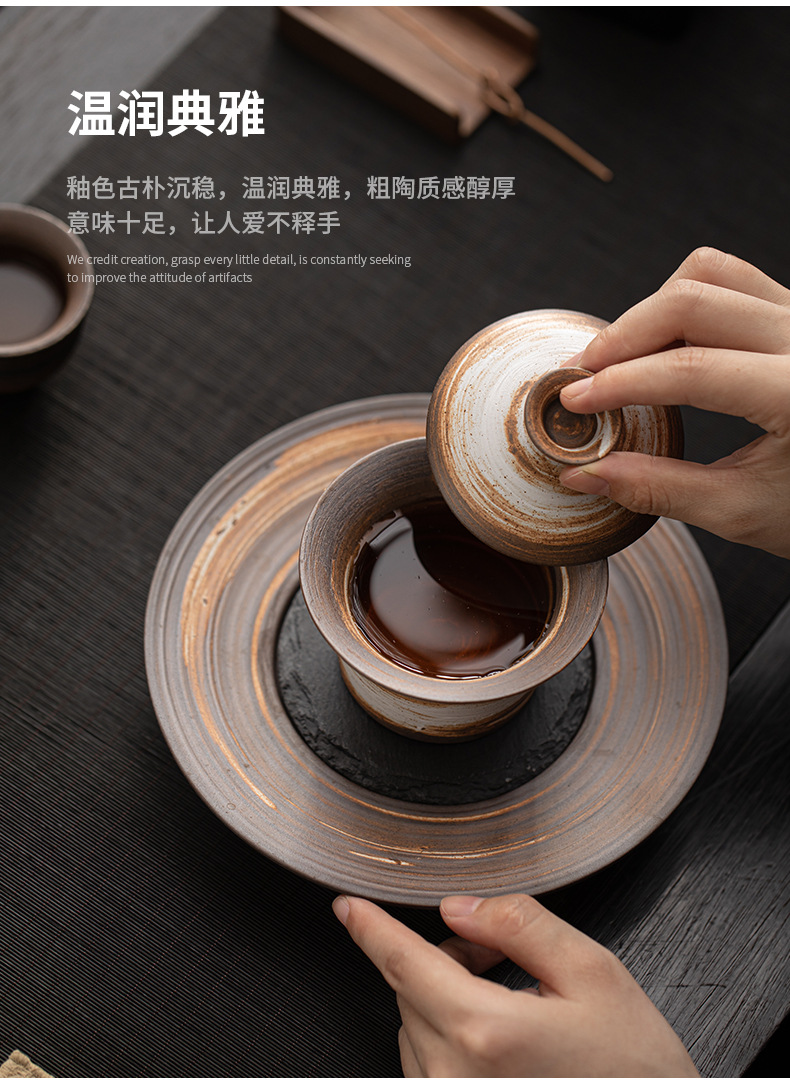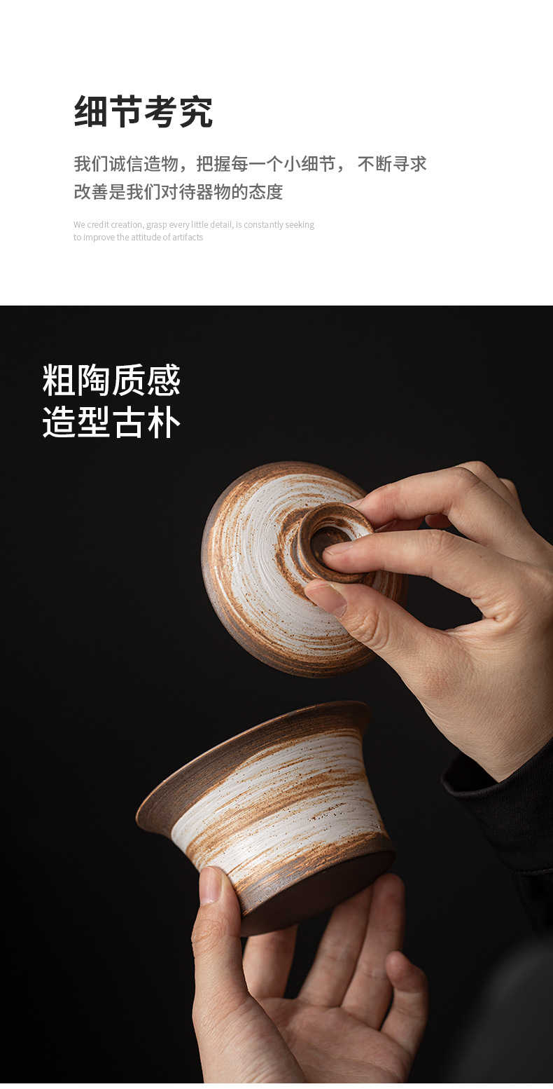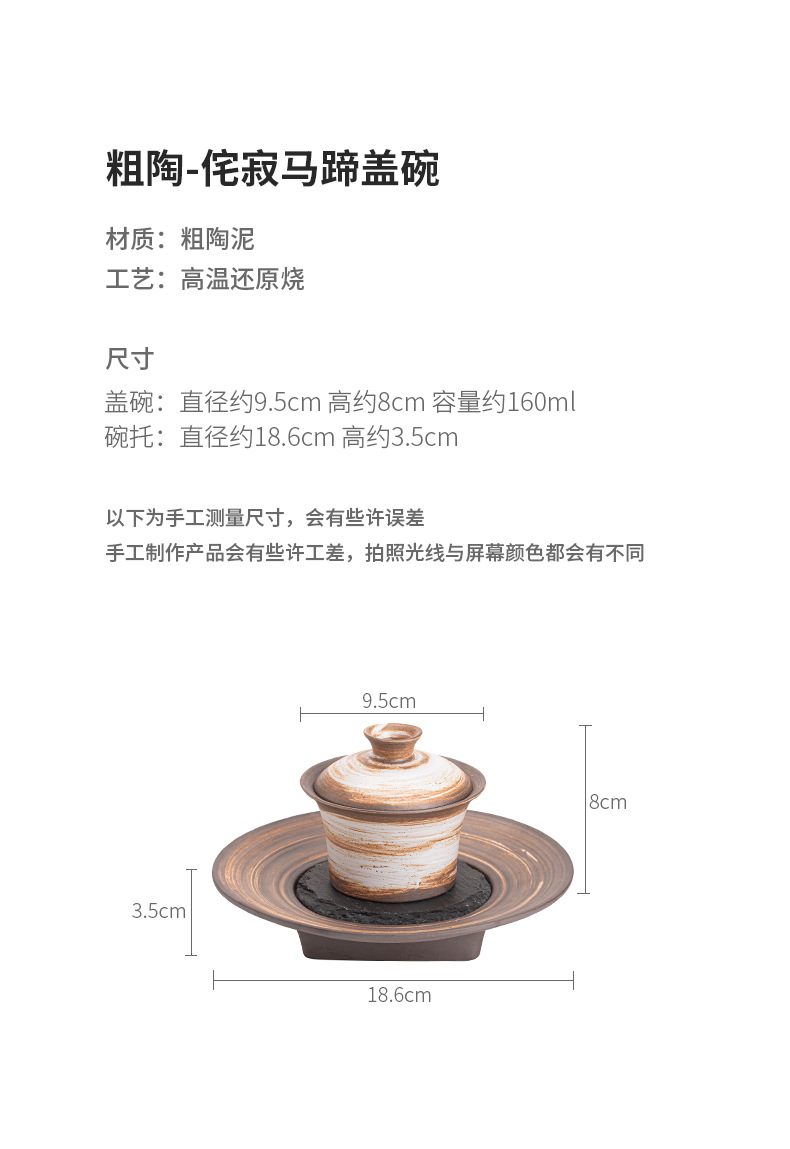 - Bát có nắp móng ngựa trắng Wabi-Jiying Bát đựng trà cổ điển thủ công Bát có nắp tam tài gia dụng dụng cụ pha trà công phu gốm thô