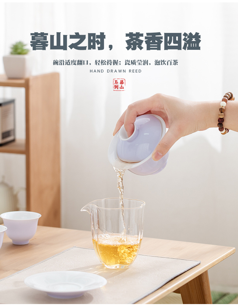 Bát có nắp Mushan Sancai nữ bát trà gốm sứ đơn màu tím lốp mỏng cao cấp không nóng tay bát đựng trà bán buôn