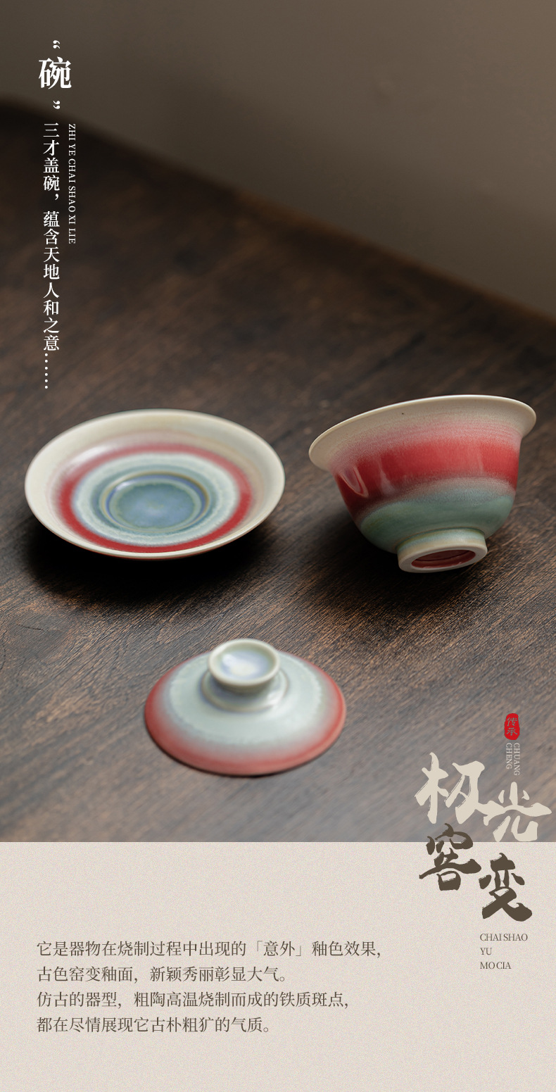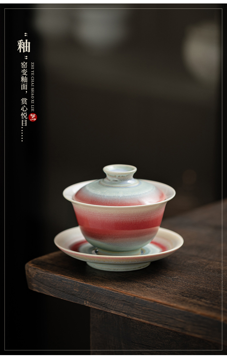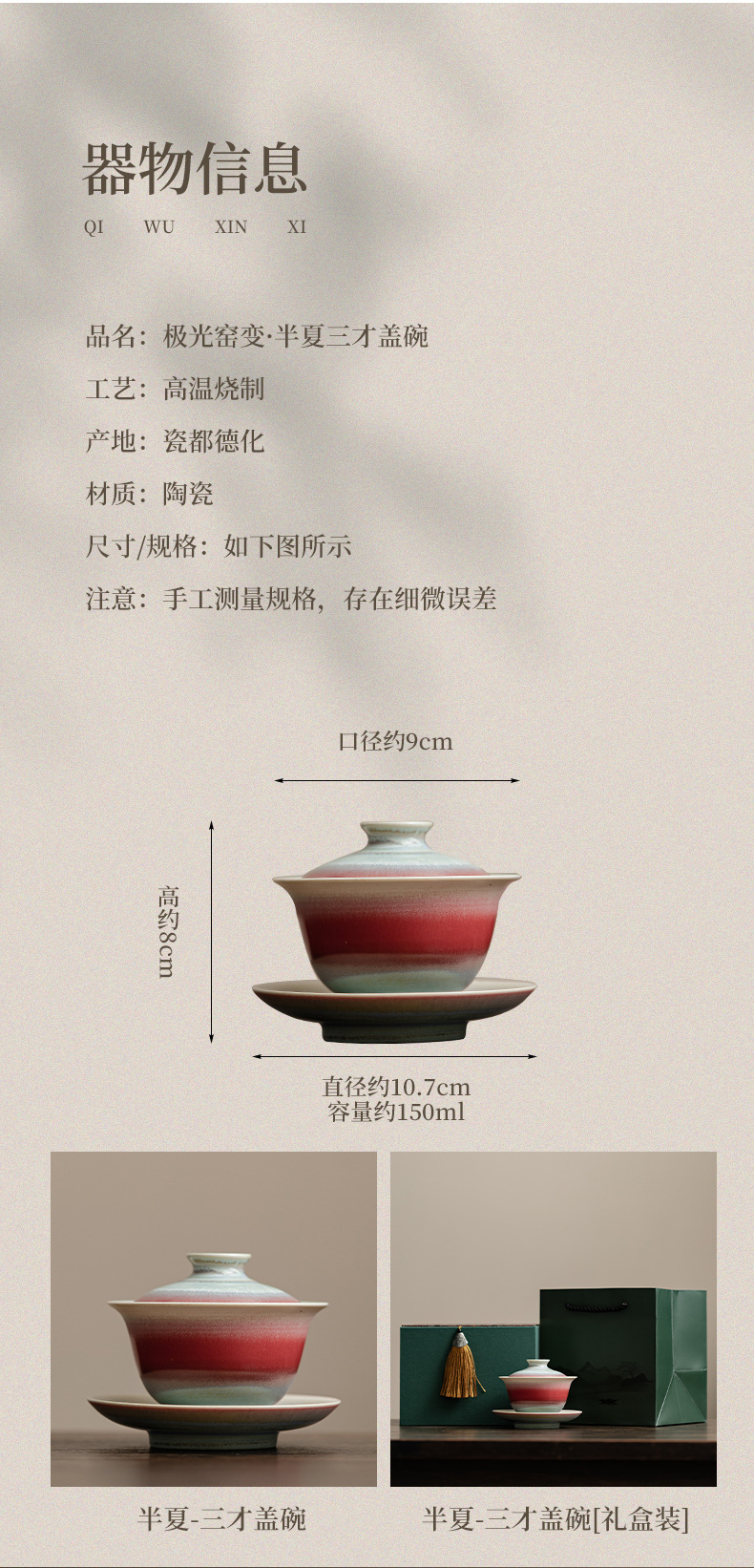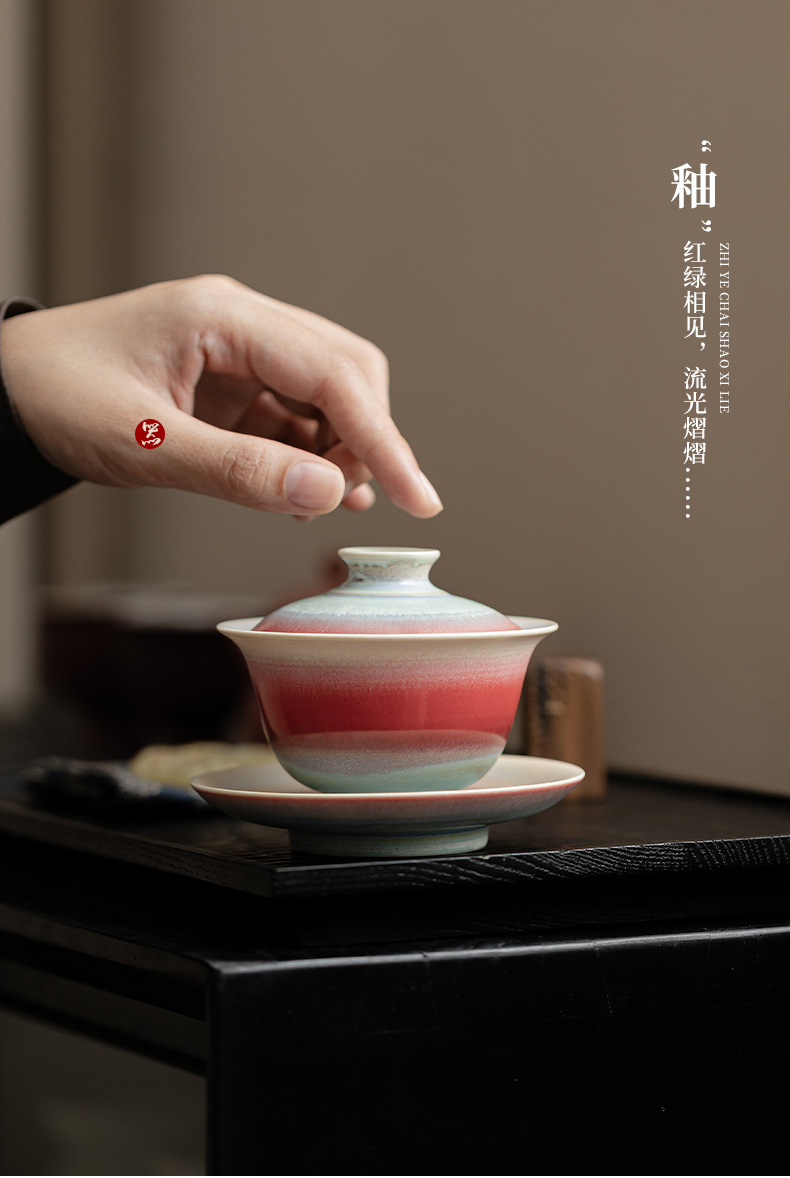 Bát có nắp Sancai Pinellia, bát pha trà gốm sứ biến đổi lò nung cực quang, cốc trà có nắp, bát cầm tay gia dụng, dụng cụ pha trà đơn