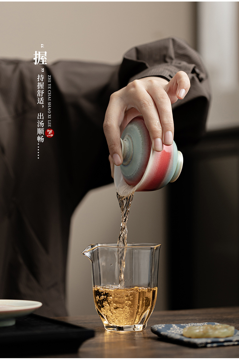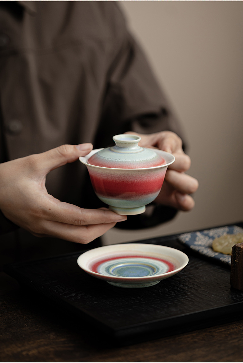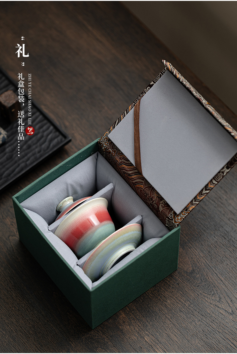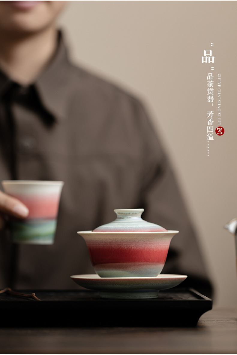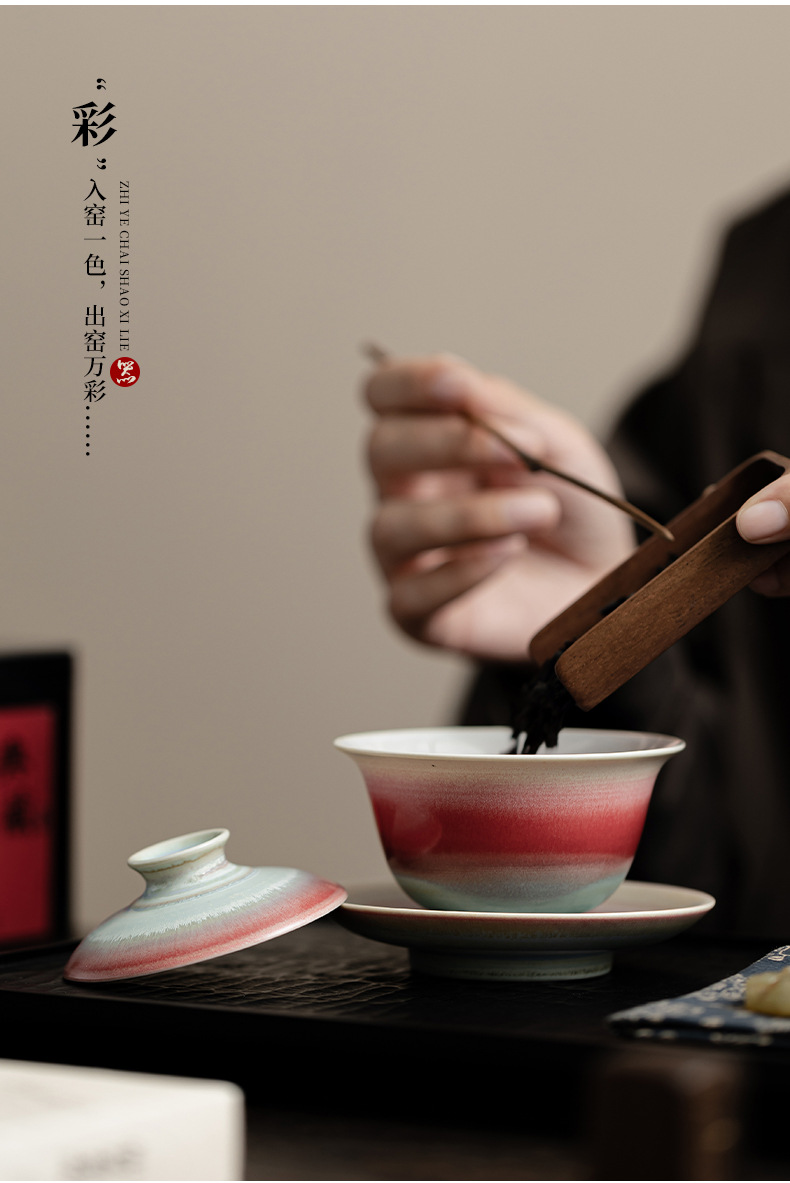 Bát có nắp Sancai Pinellia, bát pha trà gốm sứ biến đổi lò nung cực quang, cốc trà có nắp, bát cầm tay gia dụng, dụng cụ pha trà đơn