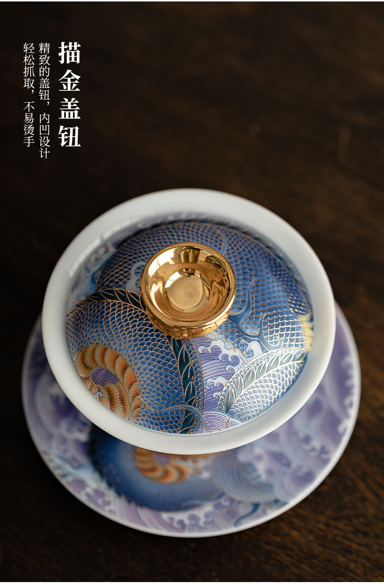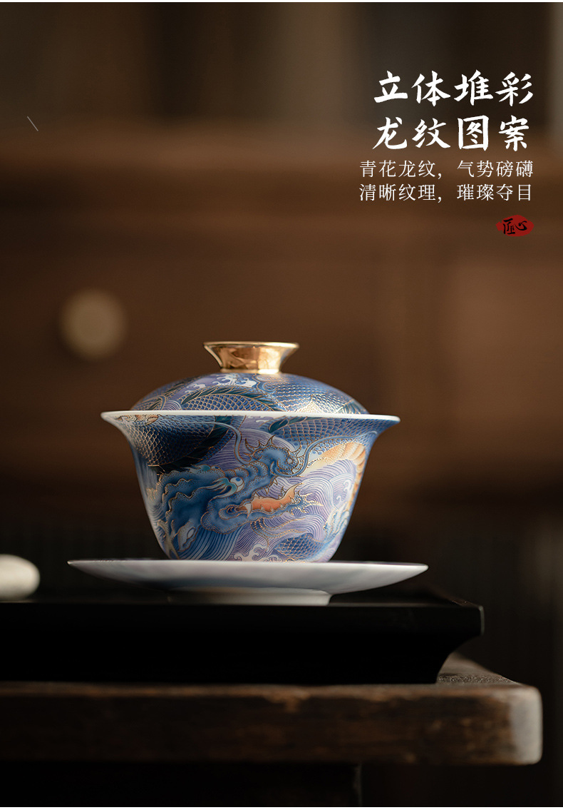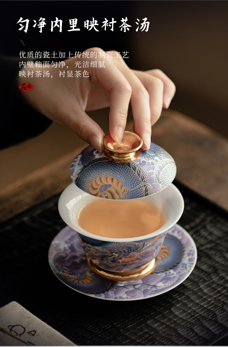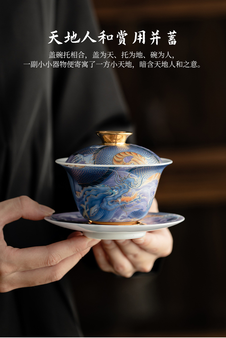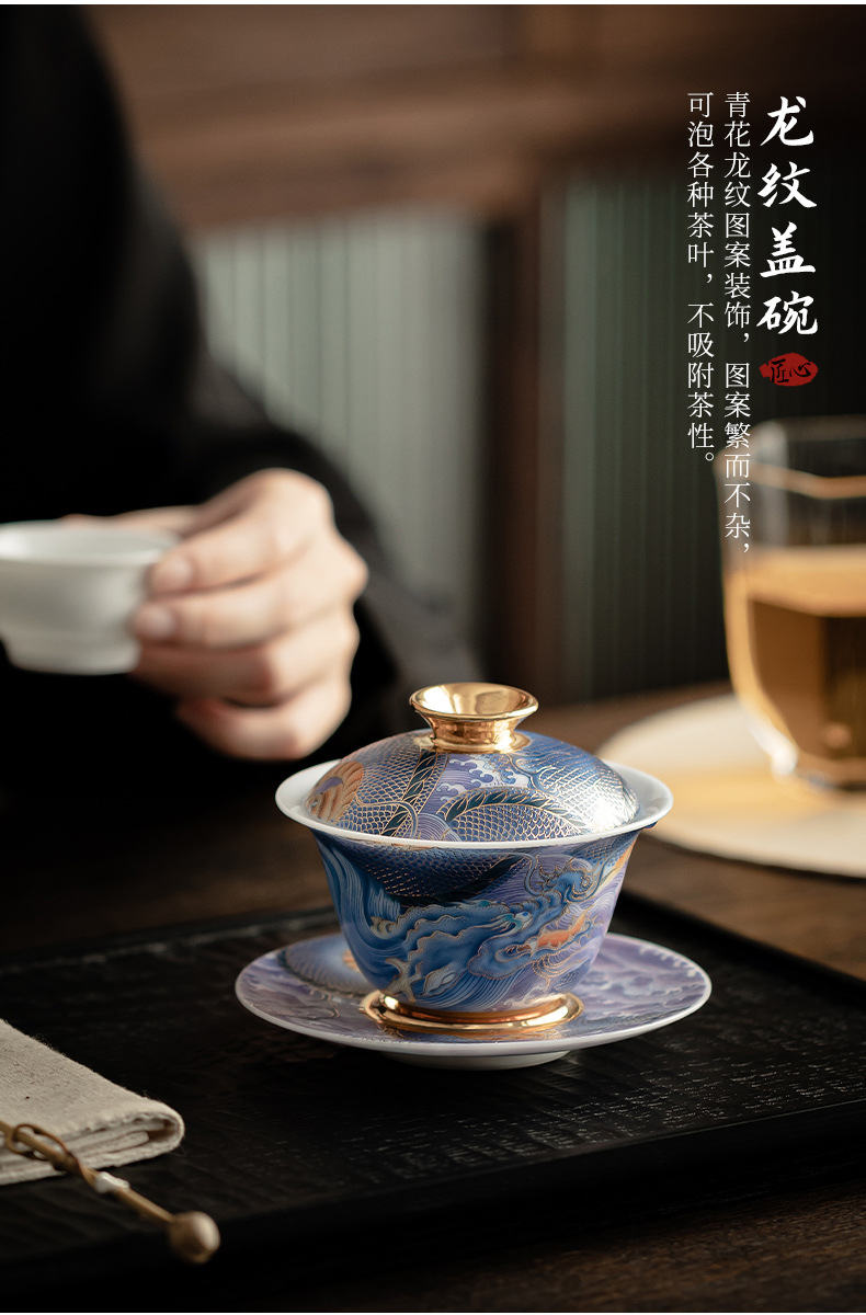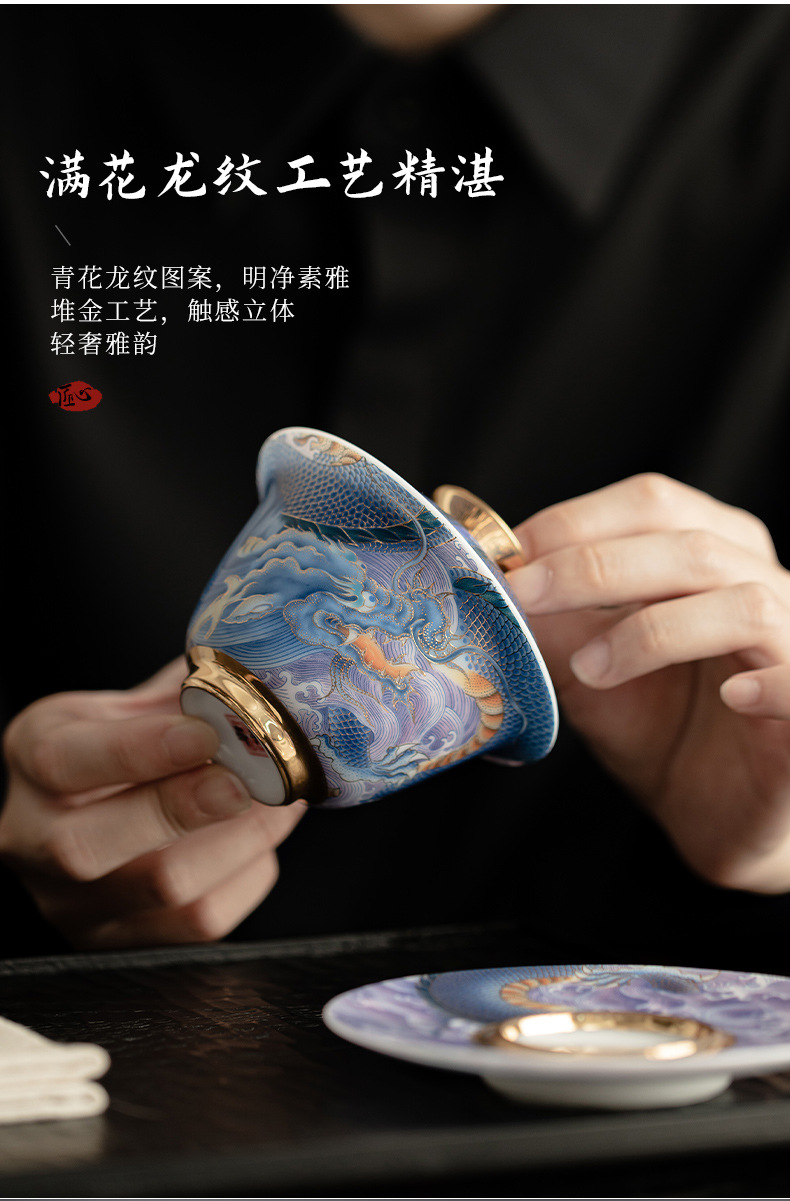 Bát có nắp sứ xanh trắng ngọc bích cốc pha trà men màu gia dụng bát có nắp tam tài cung đình cổ điển bộ trà một Kung Fu