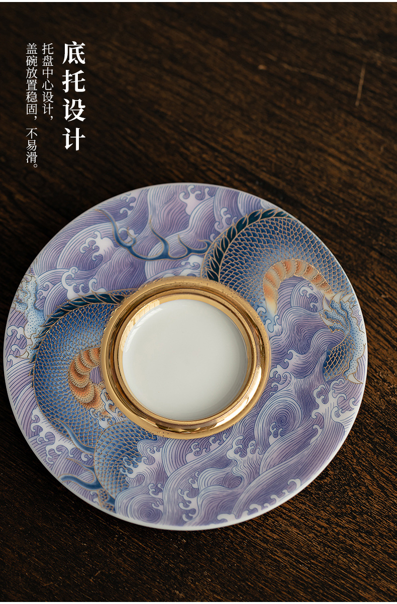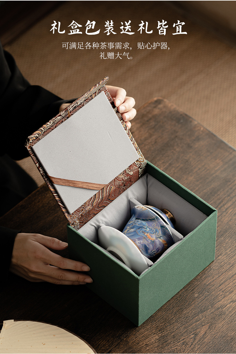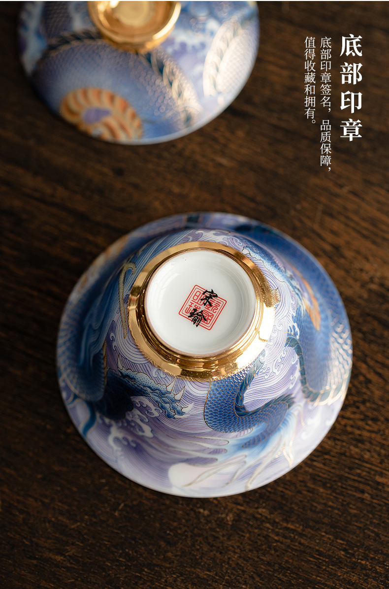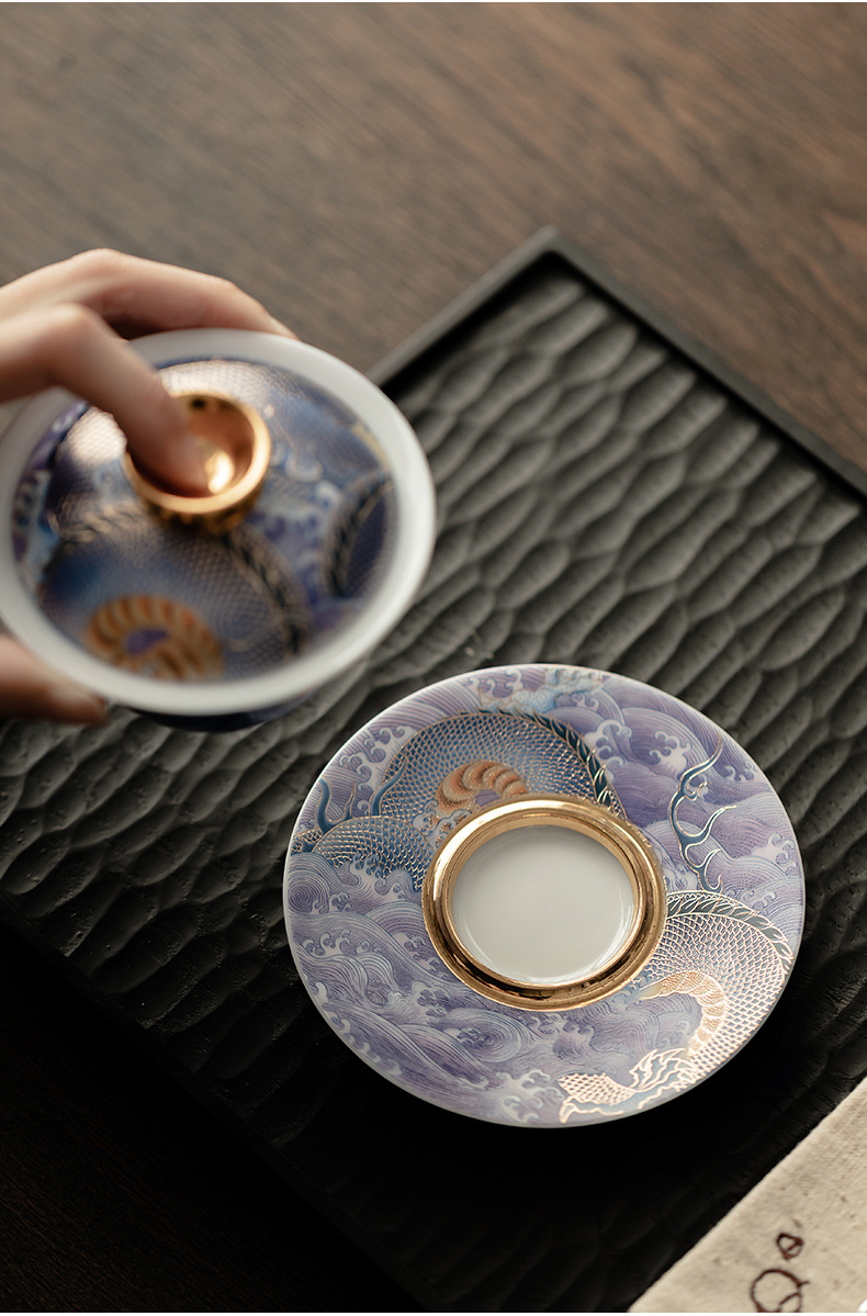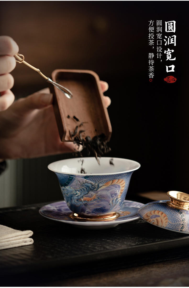 Bát có nắp sứ xanh trắng ngọc bích cốc pha trà men màu gia dụng bát có nắp tam tài cung đình cổ điển bộ trà một Kung Fu