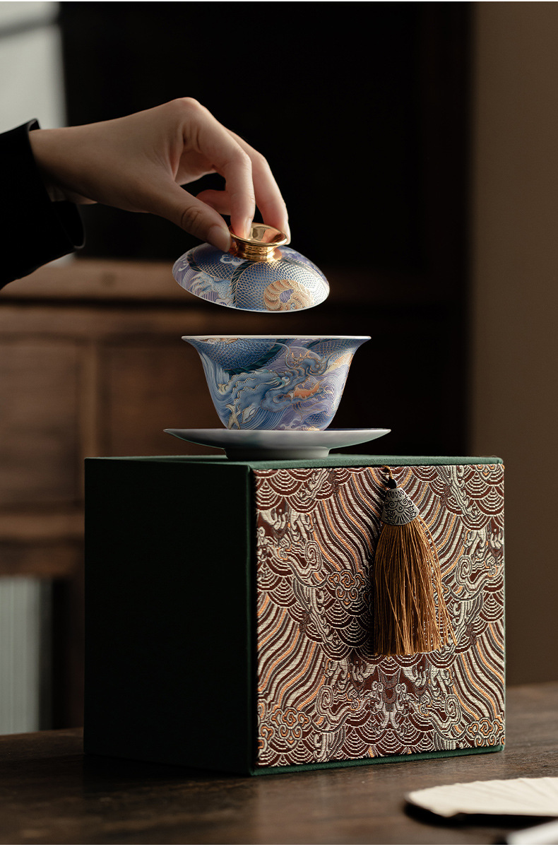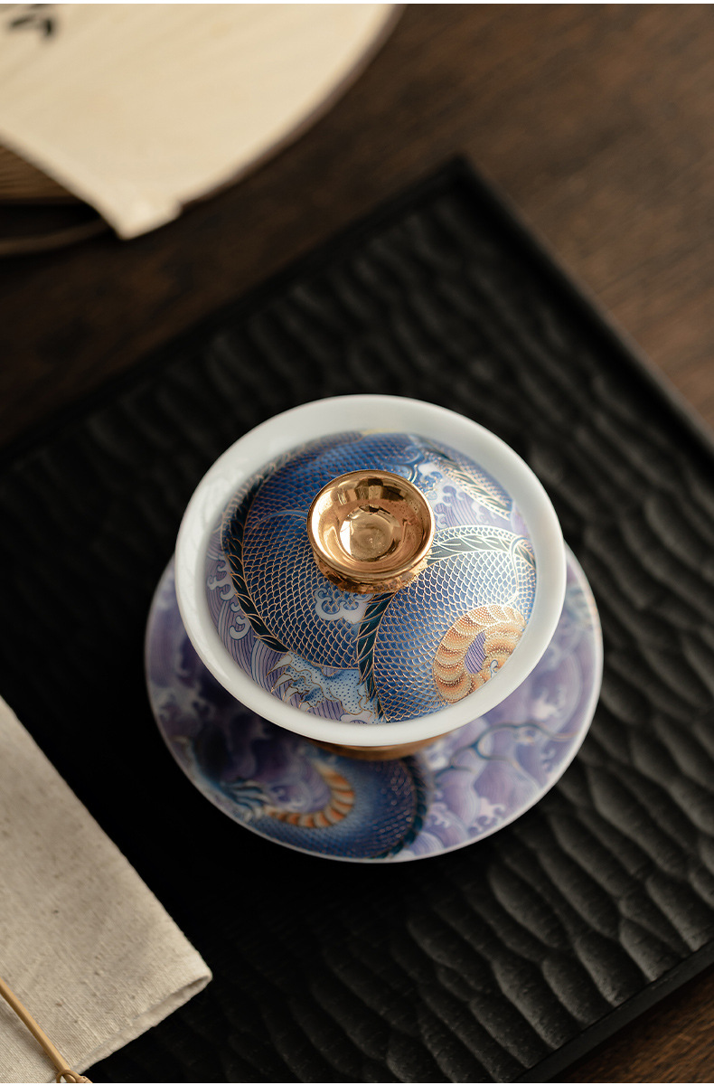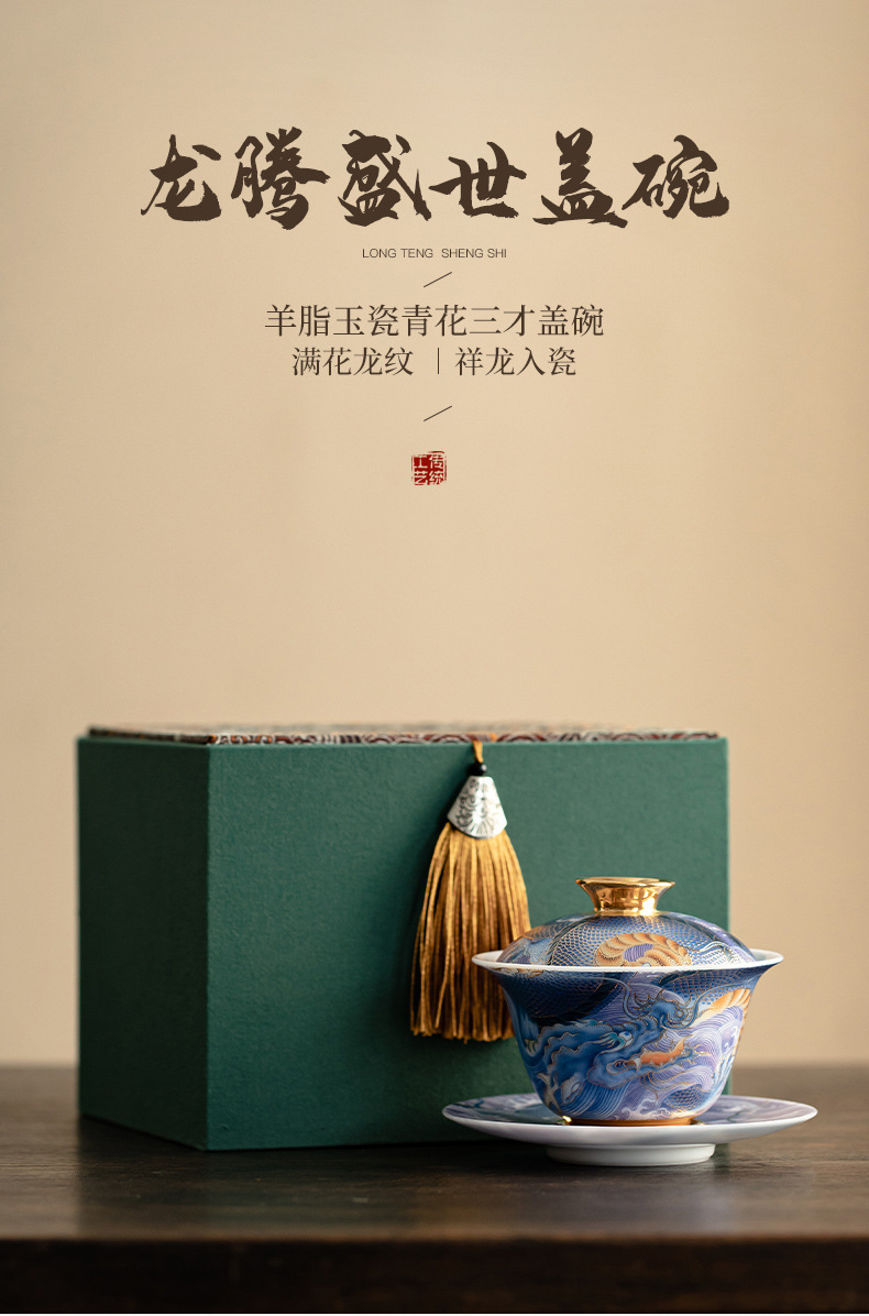 - Bát có nắp sứ xanh trắng ngọc bích cốc pha trà men màu gia dụng bát có nắp tam tài cung đình cổ điển bộ trà một Kung Fu