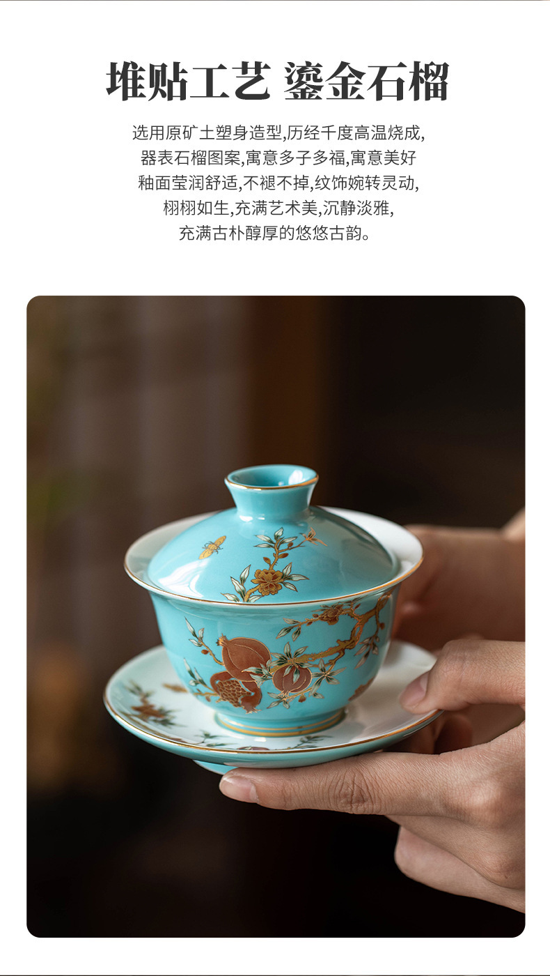 Bát có nắp tam tài bằng sứ gốm sứ gốm sứ sứ trắng kiểu Trung Quốc bộ trà gốm sứ tinh xảo cốc trà