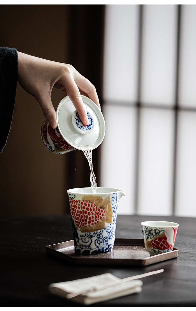 Bát có nắp tam tài cá Rồng Kiểu Trung Quốc Bát pha trà gia dụng gốm sứ Nafu Xianglong Bộ trà Kung Fu tay chống bỏng cốc trà
