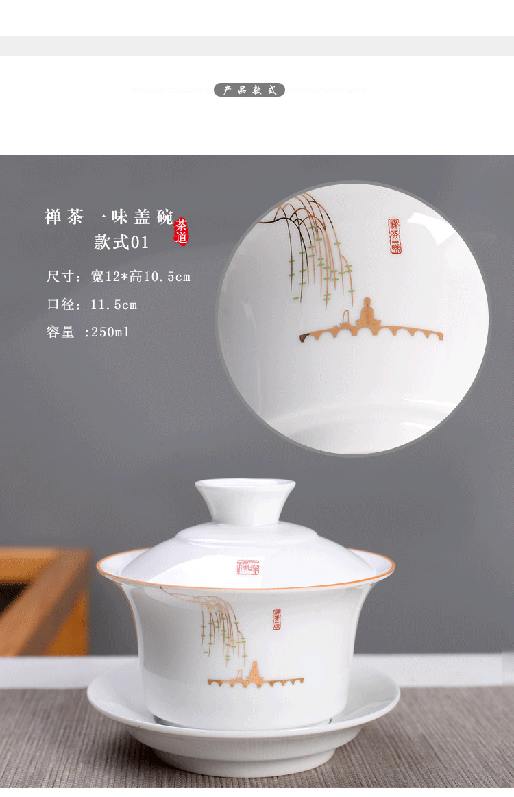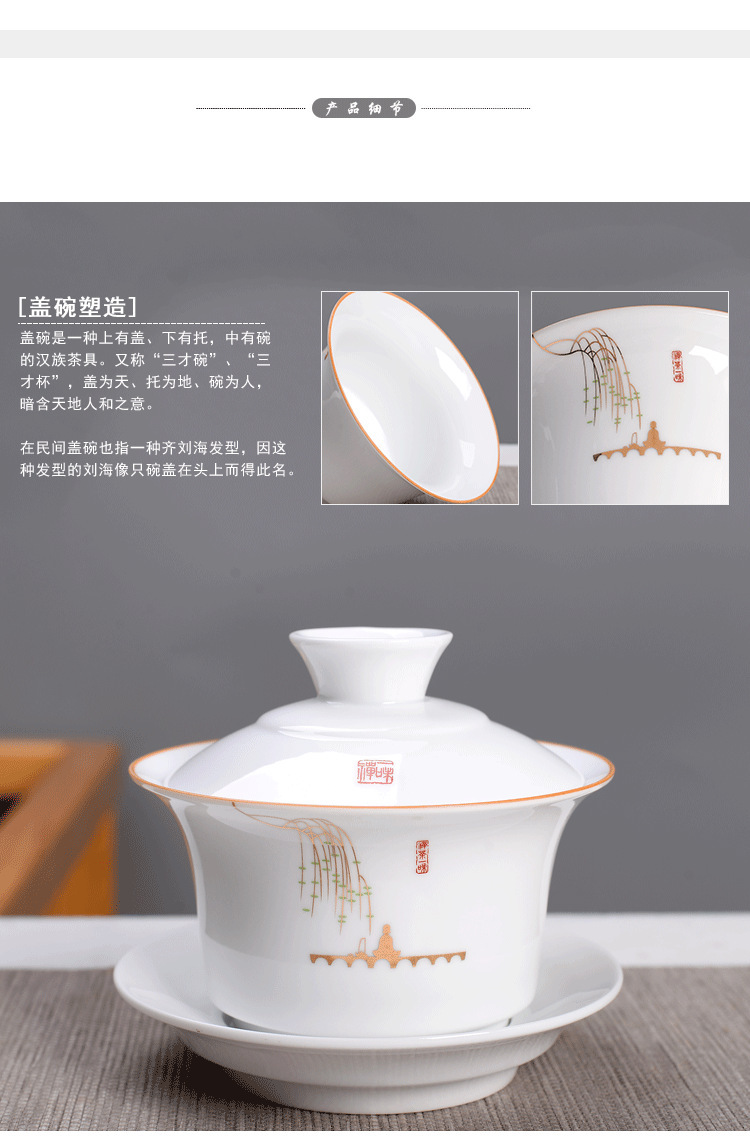 - Bát có nắp tam tài Cỡ Lớn 250ml sứ trắng/trà Jilan bát đơn Bộ trà Kung Fu trà tám báu Gốm Sứ Bát Ba pháo