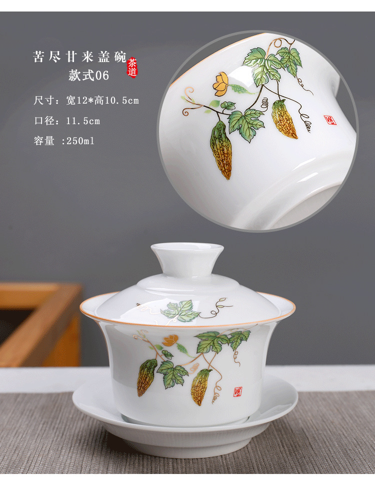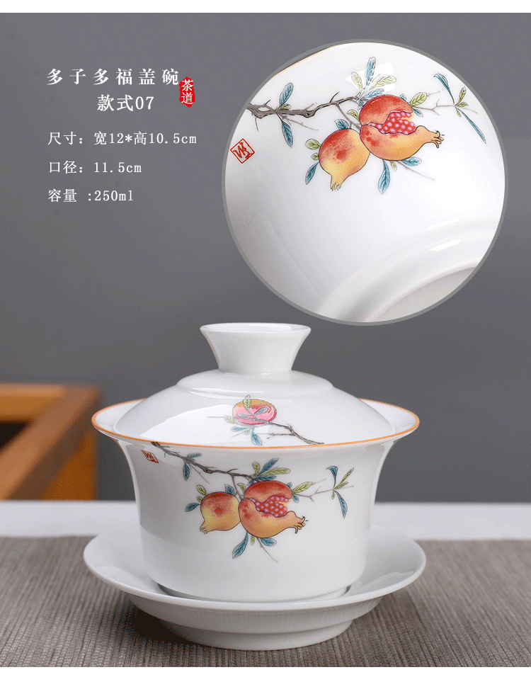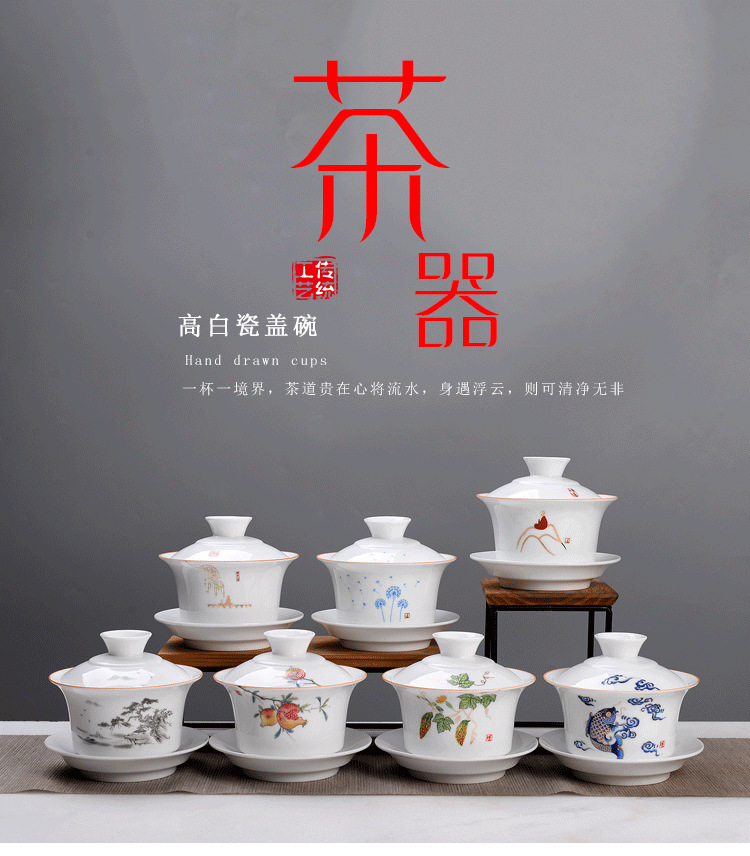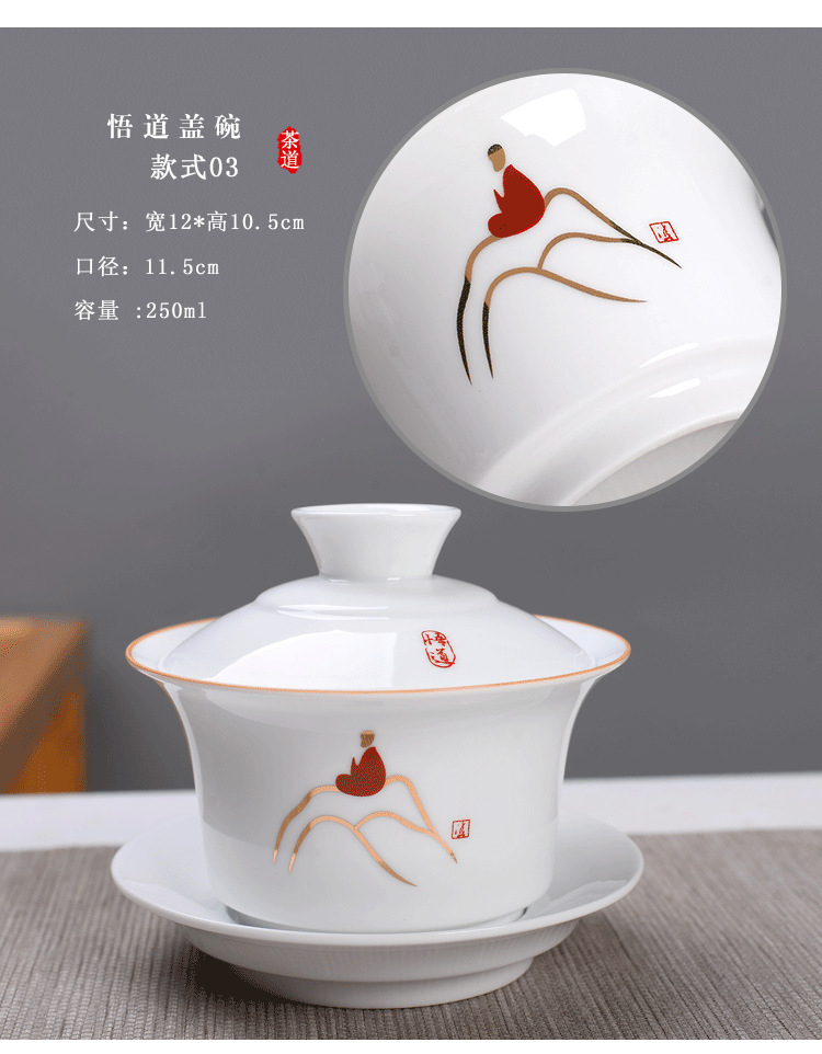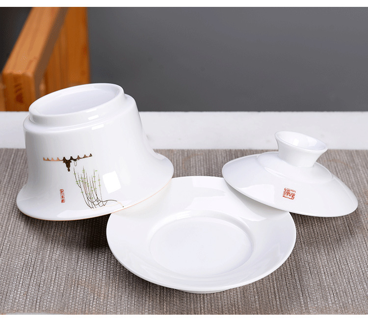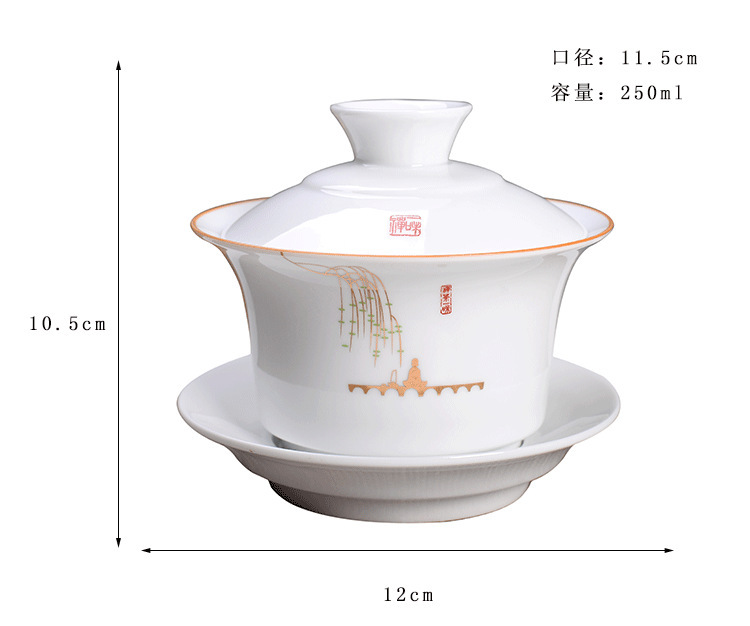 Bát có nắp tam tài Cỡ Lớn 250ml sứ trắng/trà Jilan bát đơn Bộ trà Kung Fu trà tám báu Gốm Sứ Bát Ba pháo