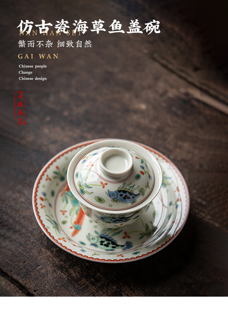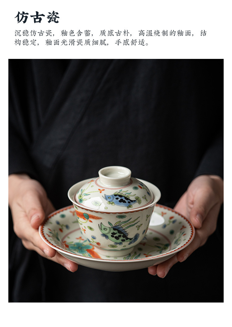 - Bát có nắp tam tài gốm sứ, ấm gốm sứ gia dụng, bộ trà công phu, bát pha trà, chén trà cỡ lớn cổ điển, bát trà đơn