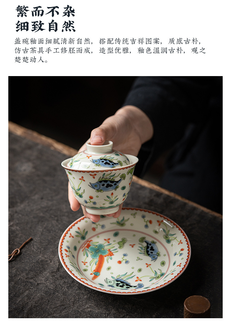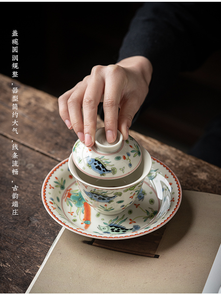 Bát có nắp tam tài gốm sứ, ấm gốm sứ gia dụng, bộ trà công phu, bát pha trà, chén trà cỡ lớn cổ điển, bát trà đơn